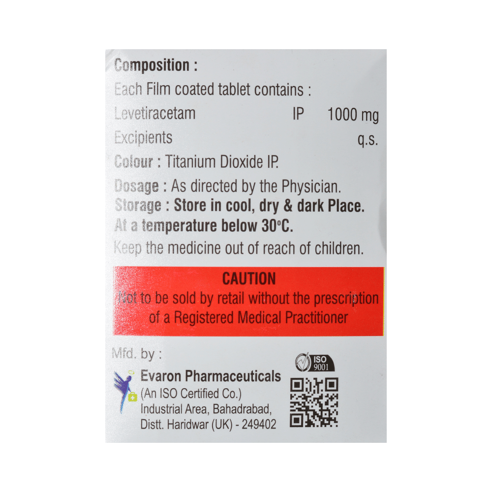 Levirate 1000mg Tablet is an anti-epileptic medicine used to treat seizures (fits) in epilepsy. It can be used alone or along with other medicines. It helps to prevent seizures for as long as you continue to take it. Levirate 1000mg Tablet suppresses the abnormal electrical activity in the brain. You can take it with or without food but try to take it at the same time each day to get the most benefit. The dose will depend on your condition and how you respond to the medicine. Your doctor will advise the right dose for you. It is generally advised as a long-term treatment. You should continue taking it for as long as your doctor has told you to, even if you feel well. If you stop or miss doses your seizures could get worse.Some common side effects of this medicine include headache, irritation, sleepiness, behavior changes, aggressive behavior, and decreased appetite. Side effects are more common during the first few weeks and usually lessen as your body gets used to the medicine. Most of these side effects do not need medical attention, but some of them can be serious. A small number of people being treated with this medicine have had thoughts of harming or killing themselves. Contact your doctor if your mood changes for the worse.Before taking it, you should tell your doctor if you have kidney problems, depression, or suicidal thoughts and if you are pregnant, planning to become pregnant, or breastfeeding. Your doctor may suggest regular blood tests to monitor your kidney function while taking this medicine.