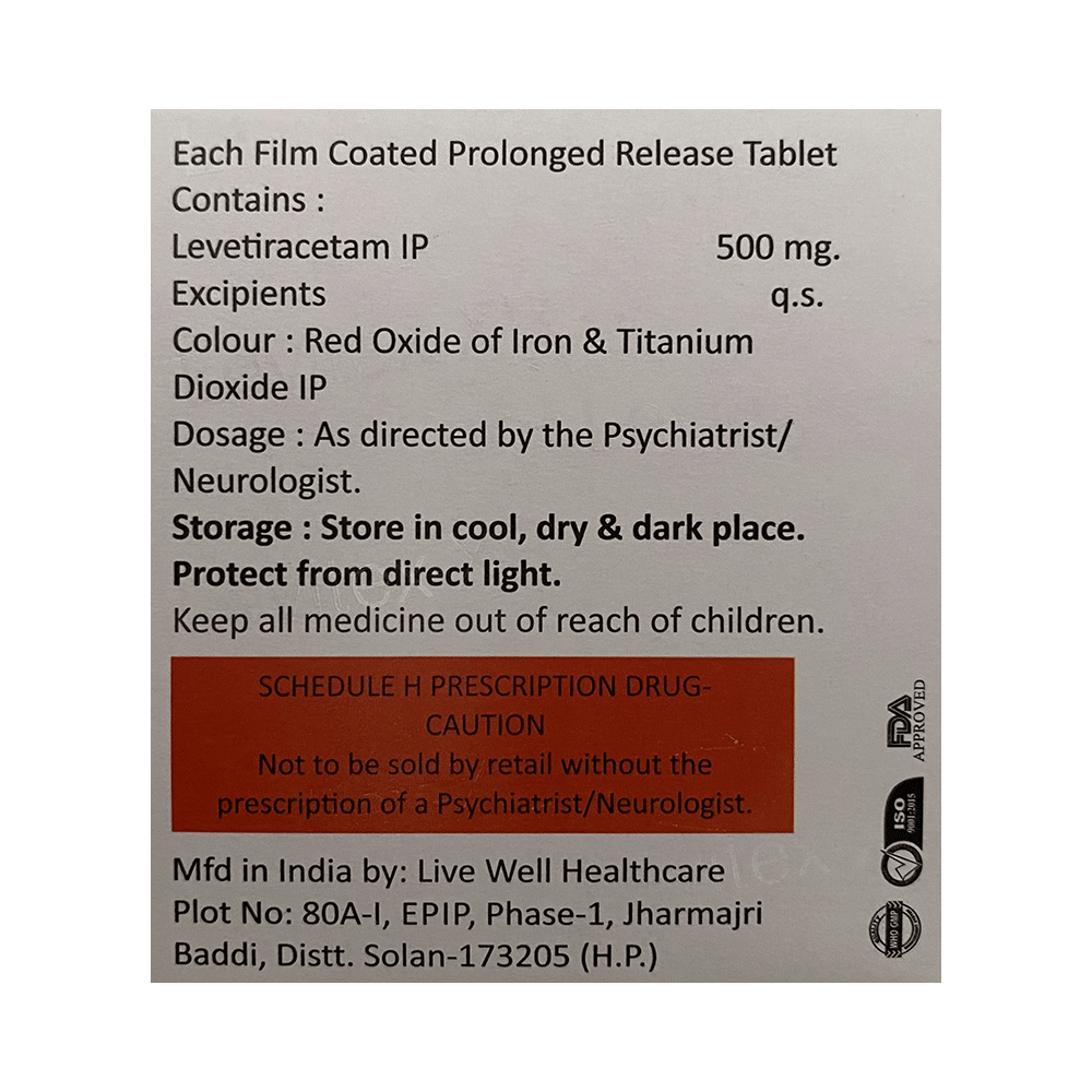 Levitex-XR Tablet is an anti-epileptic medicine used to treat seizures (fits) in epilepsy. It can be used alone or along with other medicines. It helps to prevent seizures for as long as you continue to take it. Levitex-XR Tablet suppresses the abnormal electrical activity in the brain. You can take it with or without food but try to take it at the same time each day to get the most benefit. The dose will depend on your condition and how you respond to the medicine. Your doctor will advise the right dose for you. It is generally advised as a long-term treatment. You should continue taking it for as long as your doctor has told you to, even if you feel well. If you stop or miss doses your seizures could get worse.Some common side effects of this medicine include headache, irritation, sleepiness, behavior changes, aggressive behavior, and decreased appetite. Side effects are more common during the first few weeks and usually lessen as your body gets used to the medicine. Most of these side effects do not need medical attention, but some of them can be serious. A small number of people being treated with this medicine have had thoughts of harming or killing themselves. Contact your doctor if your mood changes for the worse.Before taking it, you should tell your doctor if you have kidney problems, depression, or suicidal thoughts and if you are pregnant, planning to become pregnant, or breastfeeding. Your doctor may suggest regular blood tests to monitor your kidney function while taking this medicine.