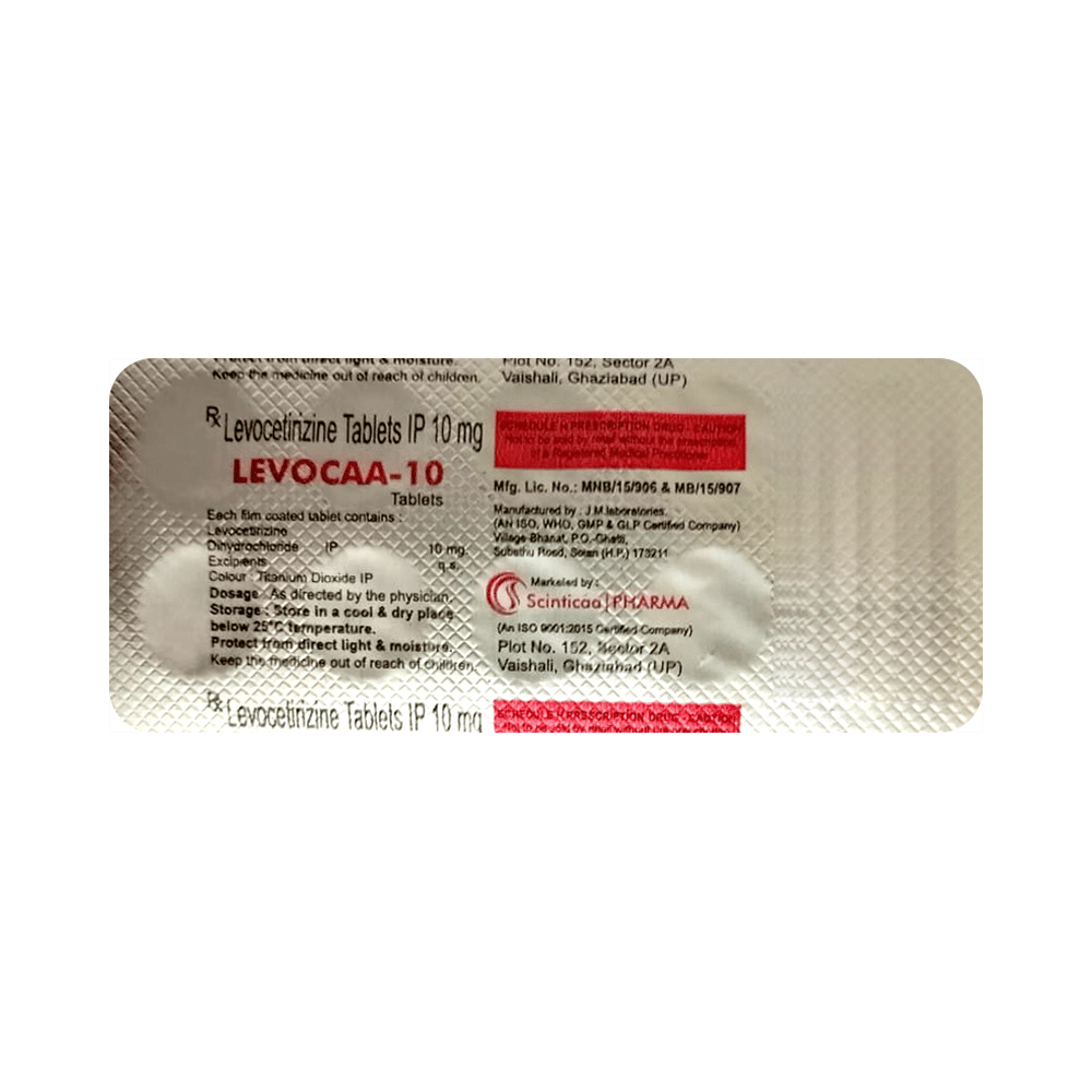 Levocaa 10 Tablet is an antihistaminic medication. It treats allergy symptoms such as itching, swelling, and rashes by blocking the effects of a chemical messenger (histamine) in the body.