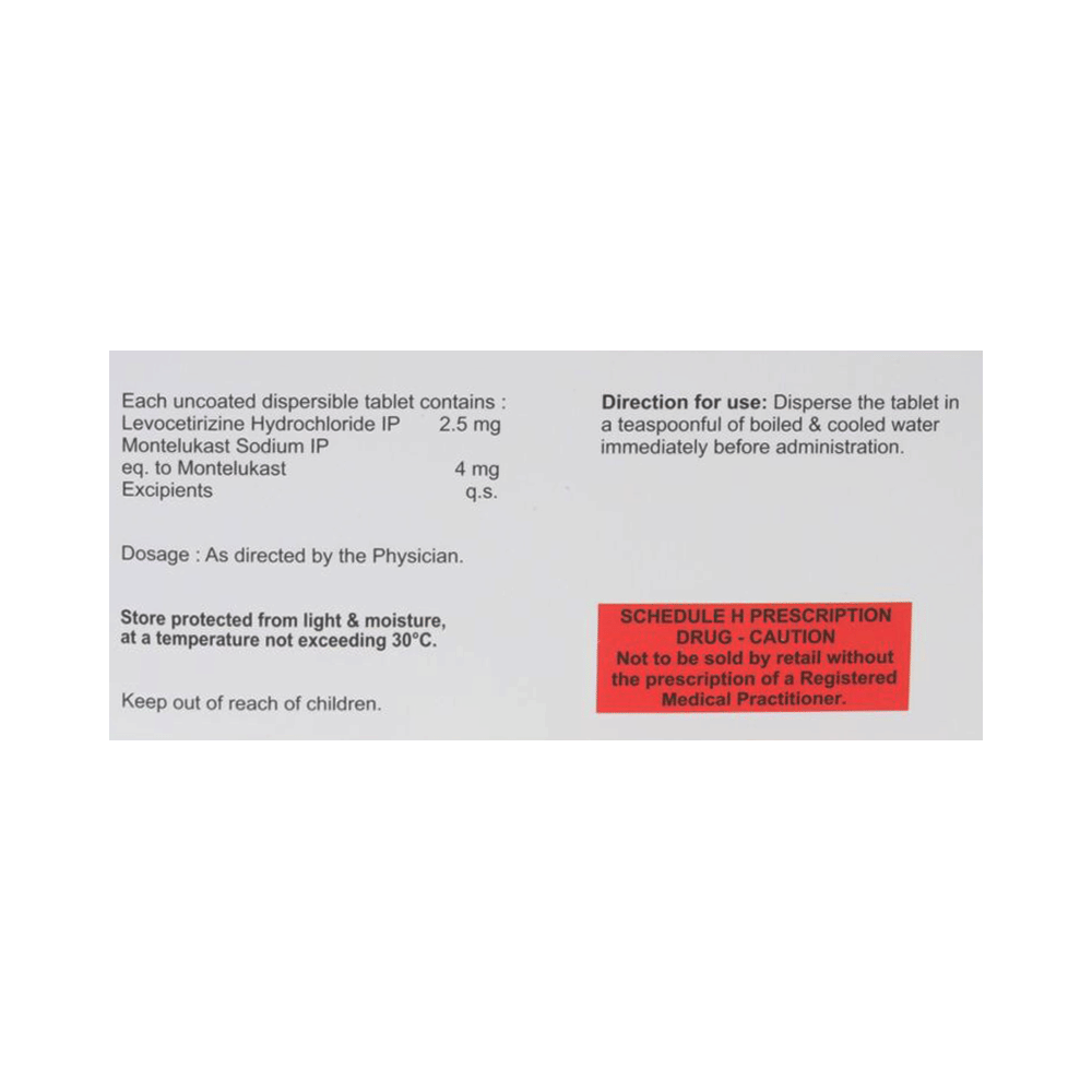 Salt Composition: Levocetirizine (2.5mg) + Montelukast (4mg)