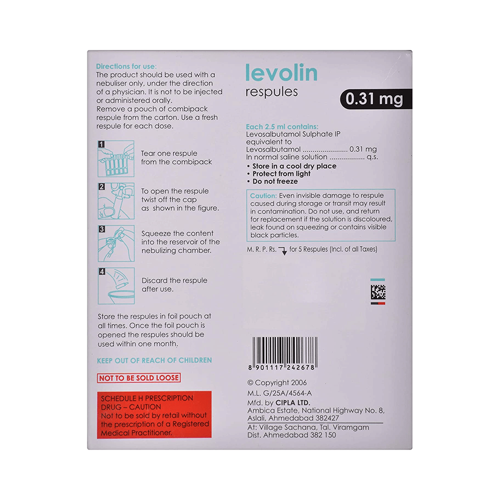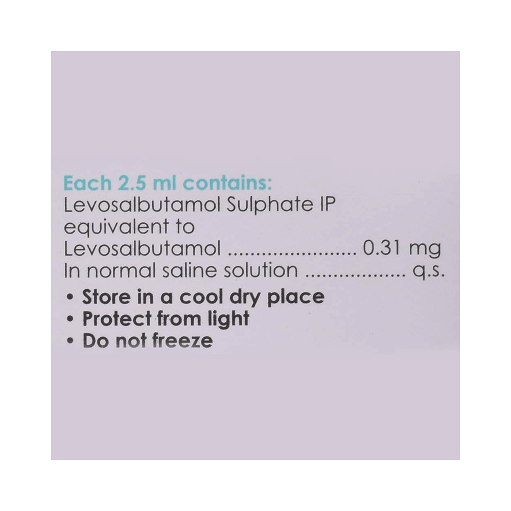 Levolin 0.31mg Respules is a bronchodilator. It works by relaxing the muscles in the airways and widens airways. This makes breathing easier.