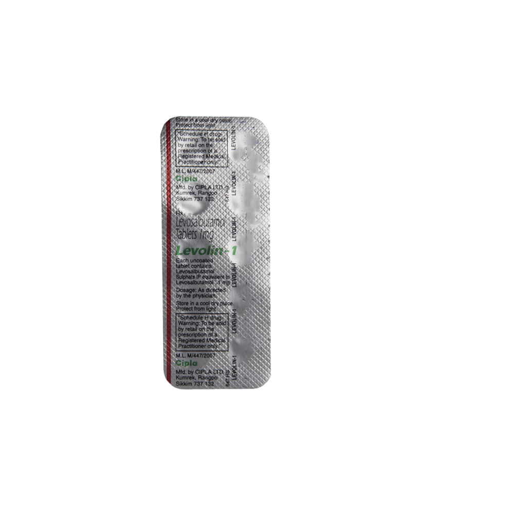 Levolin 1 Tablet is used to relieve symptoms of asthma and chronic obstructive pulmonary disease (COPD) such as coughing, wheezing and breathlessness. It helps in relaxing the muscles of the air passages, thus widening it and making it easier to breathe. You can take Levolin 1 Tablet with or without food. The dose will depend on your condition and how you respond to the medicine. Try to take it at the same time each day. It is important to keep taking this medicine until your doctor tells you not to. Use this medicine regularly to get the most benefit from it even if you feel well.Levolin 1 Tablet is generally safe and effective but some common side effects include tremor, headache, palpitation, increased heart rate, and muscle cramps. These side effects are not often dangerous and they should gradually improve as your body gets used to this medicine. There are other, rarer, side effects and you should call your doctor straight away if you get chest pain, a very bad headache, or very bad dizziness.Before using Levolin 1 Tabletl, you should tell your doctor if you have high blood pressure, an overactive thyroid gland, a history of heart problems, diabetes, or low levels of potassium in your blood to make sure it’s safe. Also, make sure your doctor knows if you are pregnant or breastfeeding before taking this medicine. Because this medicine can make you feel dizzy or shaky, do not drive, cycle, or use tools or machinery until you feel better. You should not smoke as it causes damage to your lungs and will make your condition worse.