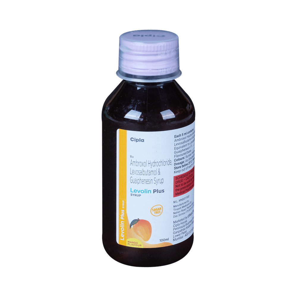 Levolin Plus Syrup Sugar Free Mango is a combination medicine used in the treatment of cough with mucus. It thins mucus in the nose, windpipe, and lungs, making it easier to cough out. It also provides relief from runny nose, sneezing, itching, and watery eyes. Levolin Plus Syrup Sugar Free Mango is taken with or without food in a dose and duration as advised by the doctor. The dose you are given will depend on your condition and how you respond to the medicine. You should keep taking this medicine for as long as your doctor recommends. If you stop treatment too early your symptoms may come back and your condition may worsen. Let your healthcare team know about all other medications you are taking as some may affect, or be affected by this medicine.The most common side effects are nausea, diarrhea, stomach pain, vomiting, muscle cramp, headache, skin rash, and increased heart rate. Most of these are temporary and usually resolve with time. Contact your doctor straight away if you are at all concerned about any of these side effects. This medicine can also cause sleepiness, so do not drive or do anything that requires mental focus until you know how this medicine affects you. Avoid drinking alcohol while taking this medicine as it can make sleepiness worse.Never support self-medication or recommend your medicine to another person. It is beneficial to have plenty of fluids while taking this medication. Before taking this medicine, you should tell your doctor if you are pregnant, planning pregnancy, or breastfeeding. You should also tell your doctor if you have any kidney or liver diseases so that your doctor can prescribe a suitable dose for you.