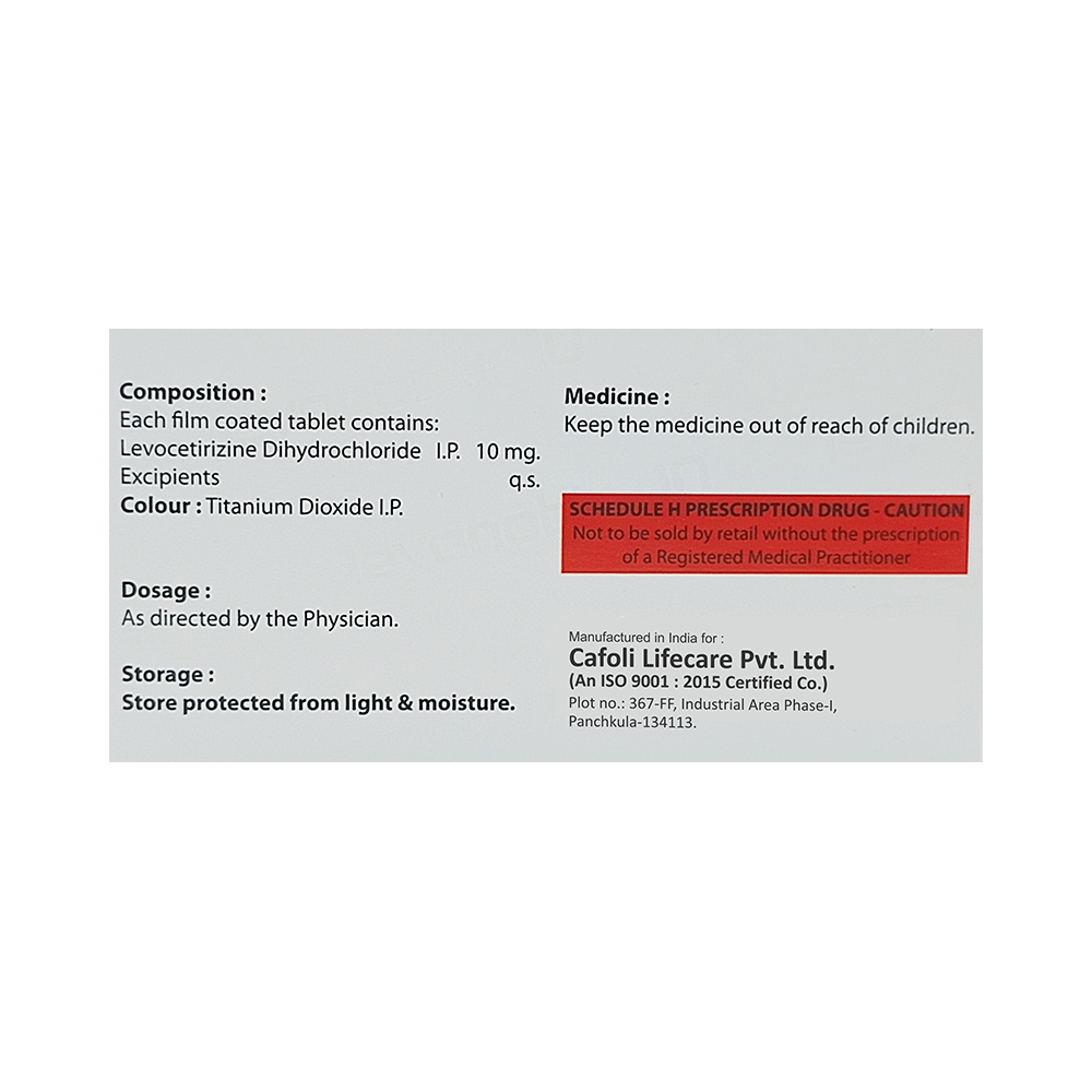 Levonoble 10 Tablet is an antihistaminic medication. It treats allergy symptoms such as itching, swelling, and rashes by blocking the effects of a chemical messenger (histamine) in the body.