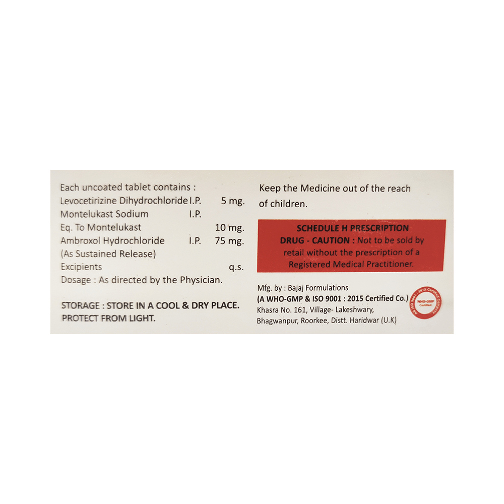 Salt Composition: Ambroxol (75mg) + Levocetirizine (5mg) + Montelukast (10mg)