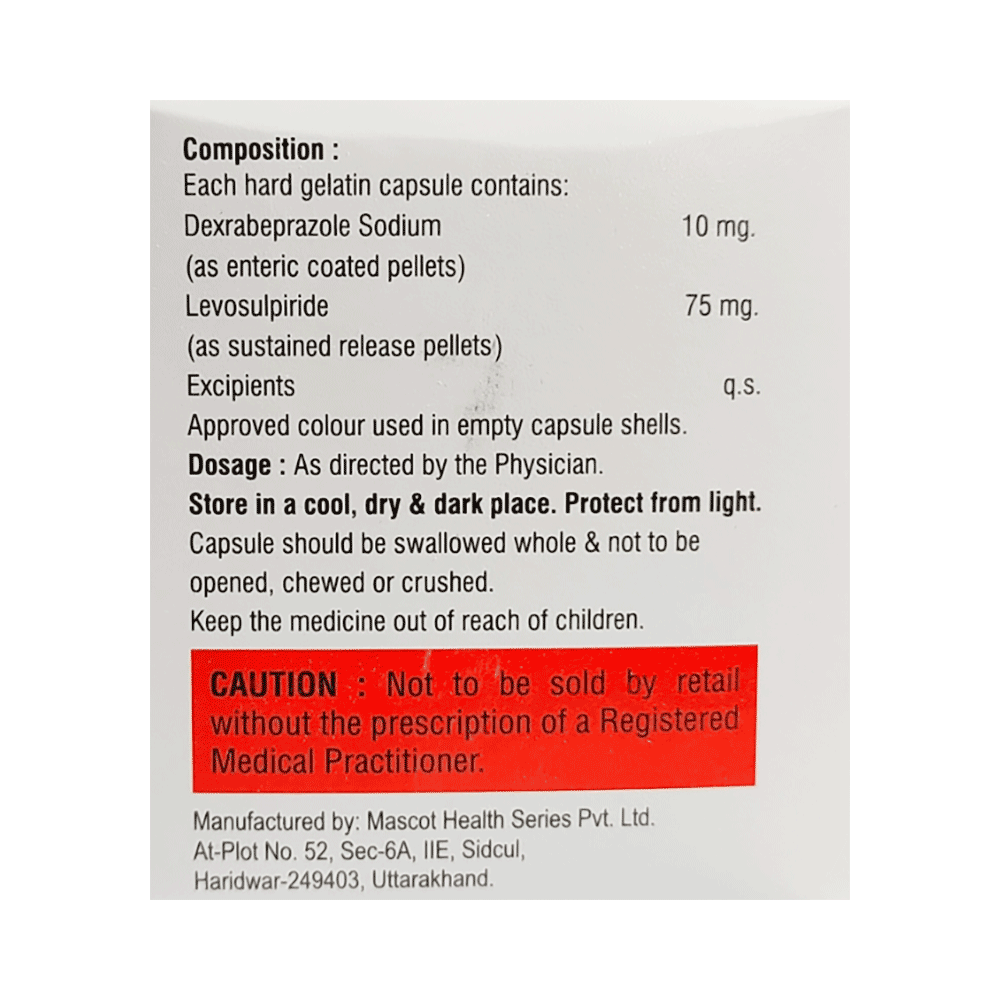 Salt Composition: Dexrabeprazole (10mg) + Levosulpiride (75mg)