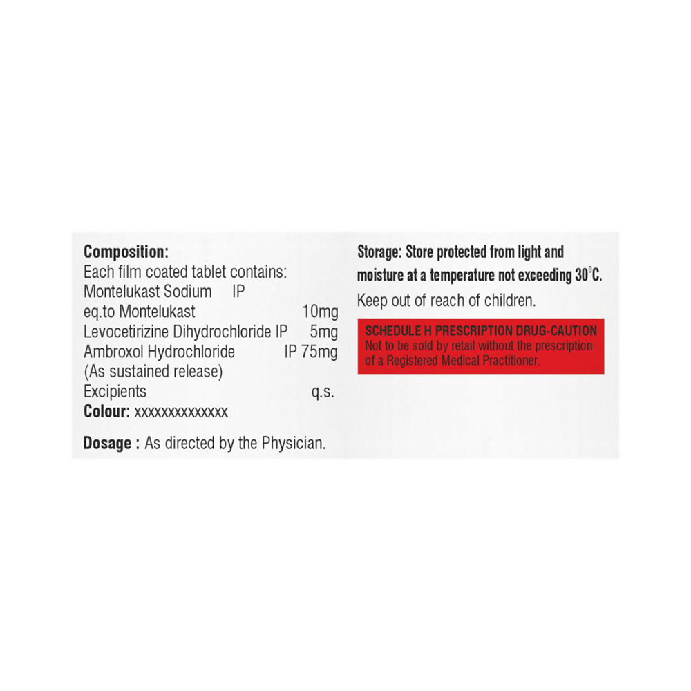 Salt Composition: Ambroxol (75mg) + Levocetirizine (5mg) + Montelukast (10mg)