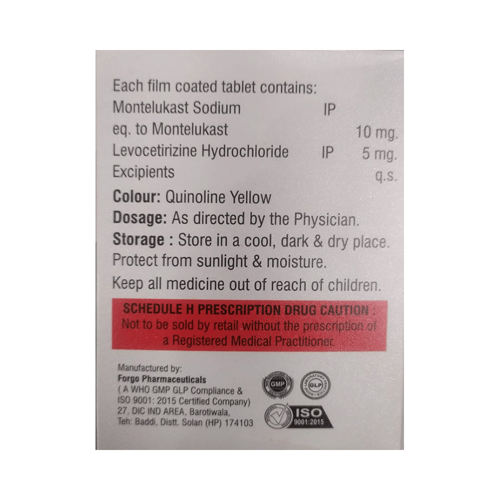 Salt Composition: Levocetirizine (5mg) + Montelukast (10mg)