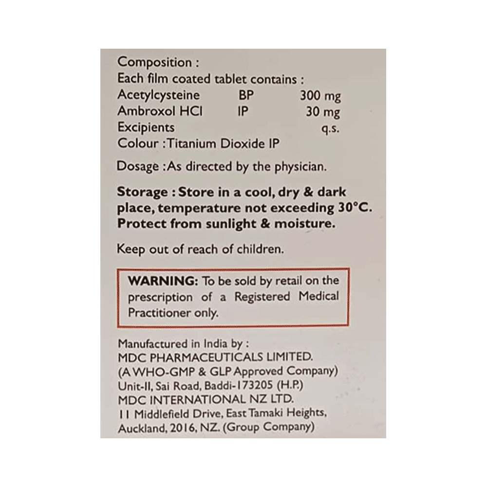 Salt Composition: Acetylcysteine (300mg) + Ambroxol (30mg)