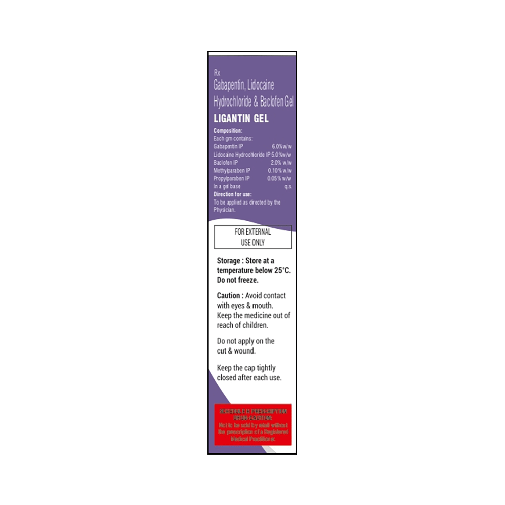Ligantin Gel is a prescription medicine used for the treatment of neuropathic pain. It works by first cooling and then warming up the skin. Thus, it calms the damaged or overactive nerves by acting on the brain, thereby decreasing the sensation of pain. Ligantin Gel is for external use only. You should use this in the dose and duration advised by your doctor. Clean and dry the affected area before applying this medicine to the skin. You should always wash your hands after applying it unless hands are the affected area.There are no major side effects associated with this medicine, but it can cause some application site burning, irritation, itching or redness. However, these side effects are temporary and usually resolve on their own. Please consult your doctor if these do not subside or bother you.