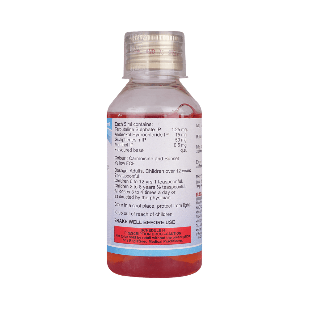 Salt Composition: Guaifenesin (50mg/5ml) + Terbutaline (1.25mg/5ml) + Bromhexine (4mg/5ml)