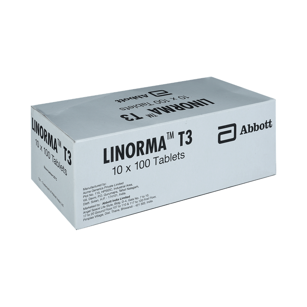 Linorma T3 20mcg Tablet is a medicine used to treat an underactive thyroid gland (hypothyroidism). It replaces the hormone that is not being produced by your thyroid gland in sufficient quantity and helps regulate your body’s energy and metabolism. Before you start taking Linorma T3 20mcg Tablet, your doctor may do a blood test to see what dose you need. Once you start taking the medicine, you will have regular blood tests to see how well it is working, and the dose may be adjusted from time to time. Take it regularly and take it for as long as your doctor has prescribed. It may take several weeks before your symptoms start to improve. If you stop taking it without consulting your doctor, your symptoms may come back.The most common side effects of Linorma T3 20mcg Tablet are caused when it is taken in a higher dose than you need. These side effects include arrhythmias, dyspnea, headache, nervousness, and muscle weakness. Most side effects will disappear once you are on the right dose.Call your doctor straight away if you have a very high temperature, fast or irregular heart rate, low blood pressure, yellowness in the eyes/skin, confusion, or fits. Linorma T3 20mcg Tablet may cause weight loss, but should not be prescribed or taken to treat obesity. Pregnant or breastfeeding women should consult their doctor before taking Linorma T3 20mcg Tablet to ensure safety. Many other drugs affect the way this medicine works. Ask your doctor for advice if you are taking any other medications.