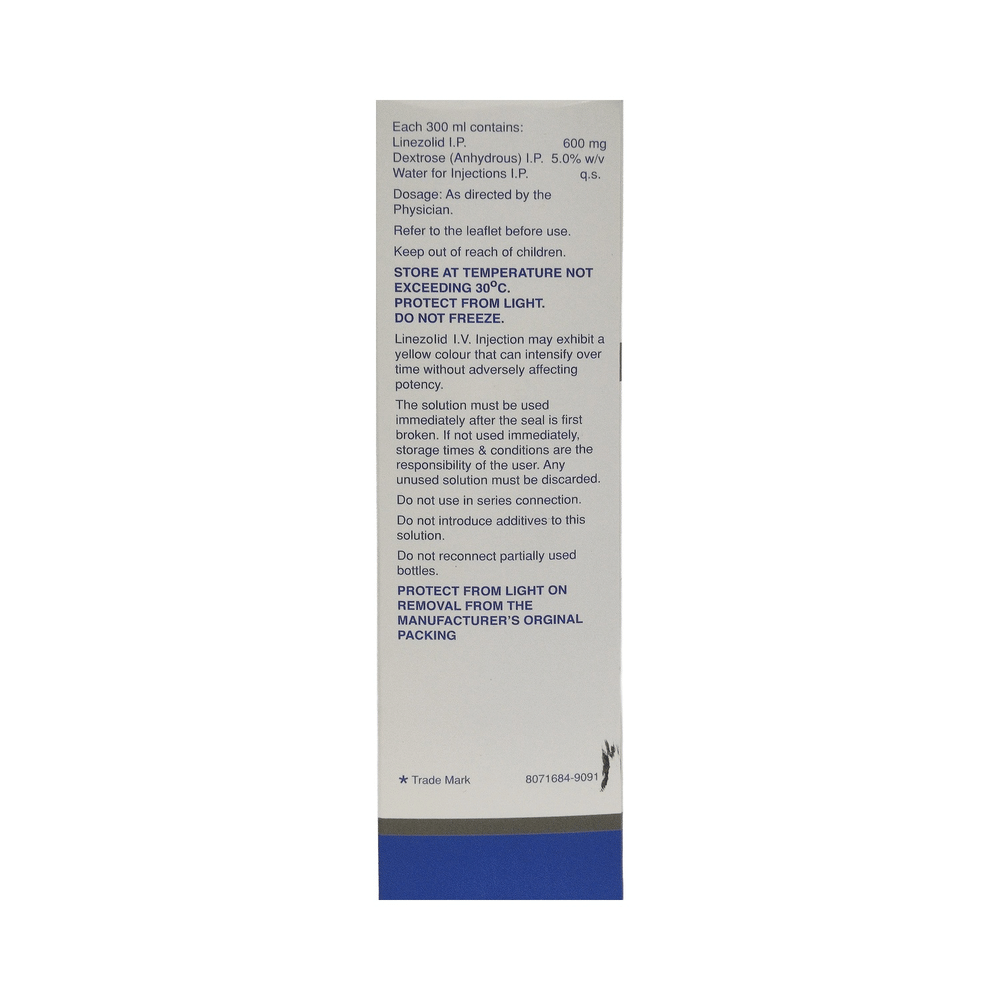 LInox 600mg Infusion is an antibiotic medicine used in the treatment of severe bacterial infections. It is used to treat infections of the lungs (pneumonia), skin, and soft tissues. LInox 600mg Infusion is given as a drip (intravenous infusion) or as an injection under the supervision of a healthcare professional. It should be used regularly at evenly spaced time intervals as prescribed by your doctor. Do not skip any doses and finish the full course of treatment even if you feel better. Stopping the medicine too early may lead to the infection returning or worsening.This medicine's most common side effects include vomiting, headache, nausea, decreased blood cell counts, and diarrhea. These are usually mild but let your doctor know if they bother you or last more than a few days.Before using it, you should tell your doctor if you are allergic to any antibiotics or have any kidney or liver problems. You should also let your doctor know all other medicines you are taking as they may affect, or be affected by this medicine. Pregnant and breastfeeding mothers should consult their doctor before using it.