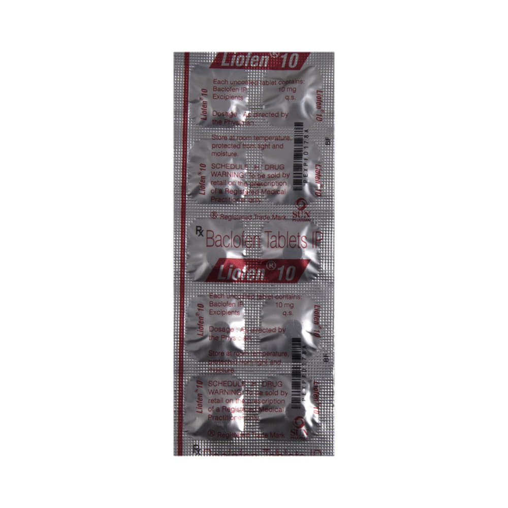 Liofen 10 Tablet is a muscle relaxer. It is used to treat muscular symptoms such as rigidity, tension, and stiffness that may occur due to various conditions such as cerebral palsy, multiple sclerosis, motor neuron disease, or injury to the head, brain, or spine. Liofen 10 Tablet can be taken with food. In general, you should try to use the smallest amount necessary to control your symptoms, for the shortest possible time. You should take this medicine regularly while you need it. Try not to miss doses as this will make the medicine less effective.Some common side effects of this medicine include fatigue, weakness, drowsiness, and dizziness. If any of these side effects do not go away or get worse, you should let your doctor know. Your doctor may be able to suggest ways of preventing or reducing the symptoms.To make sure it is safe for you, before taking this medicine, let your doctor know if you have any medical conditions or disorders. You should also tell your doctor all the other medicines you are using or taking. Pregnant and breastfeeding women should consult their doctors before using this medicine.