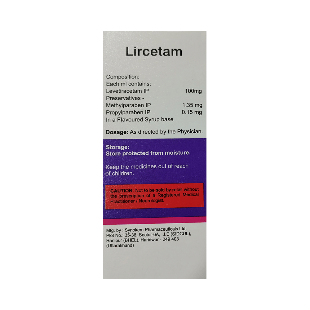 Lircetam Oral Solution is an anti-epileptic medicine used to treat seizures (fits) in epilepsy. It can be used alone or along with other medicines. It helps to prevent seizures for as long as you continue to take it. Lircetam Oral Solution suppresses the abnormal electrical activity in the brain. You can take it with or without food but try to take it at the same time each day to get the most benefit. The dose will depend on your condition and how you respond to the medicine. Your doctor will advise the right dose for you. It is generally advised as a long-term treatment. You should continue taking it for as long as your doctor has told you to, even if you feel well. If you stop or miss doses your seizures could get worse.Some common side effects of this medicine include headache, irritation, sleepiness, behavior changes, aggressive behavior, and decreased appetite. Side effects are more common during the first few weeks and usually lessen as your body gets used to the medicine. Most of these side effects do not need medical attention, but some of them can be serious. A small number of people being treated with this medicine have had thoughts of harming or killing themselves. Contact your doctor if your mood changes for the worse.Before taking it, you should tell your doctor if you have kidney problems, depression, or suicidal thoughts and if you are pregnant, planning to become pregnant, or breastfeeding. Your doctor may suggest regular blood tests to monitor your kidney function while taking this medicine.