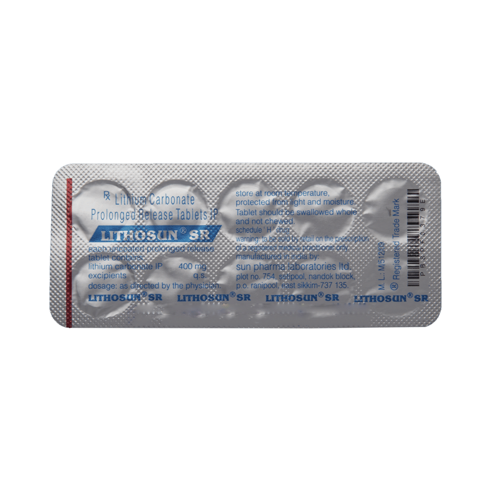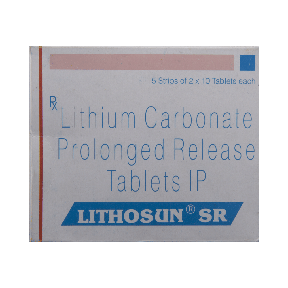 Lithosun SR Tablet is used in the treatment of bipolar disorder and mania in adults. It is sometimes used to treat other behavioral disorders as well. It reduces the frequency of manic episodes and decreases the intensity of those episodes that might occur. Lithosun SR Tablet should be taken with food. However, it is advised to take it at the same time each day as this helps to maintain a consistent level of medicine in the body. Do not skip any doses and finish the full course of treatment even if you feel better. If you have missed a dose, take it as soon as you remember it. You should continue to take this medicine for as long as the doctor advises and do not stop taking it suddenly as it may result in harmful effects.Side effects associated with the use of this medicine include tremors, slurred speech, uncoordinated body movements, nausea, Vomiting, acne, increased white blood cell count, and memory impairment. It may also cause hair loss, enlarged thyroid gland, skin rash, and increased thirst. This medicine may also cause weight gain and to control it, you should have a balanced diet and exercise regularly. If you have been taking this medicine for a long time then regular monitoring of thyroid and kidney function may be required.