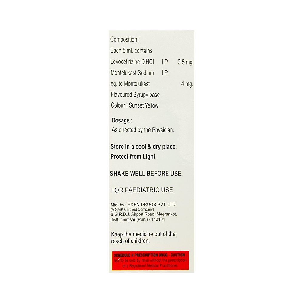 Salt Composition: Levocetirizine (2.5mg/5ml) + Montelukast (4mg/5ml)