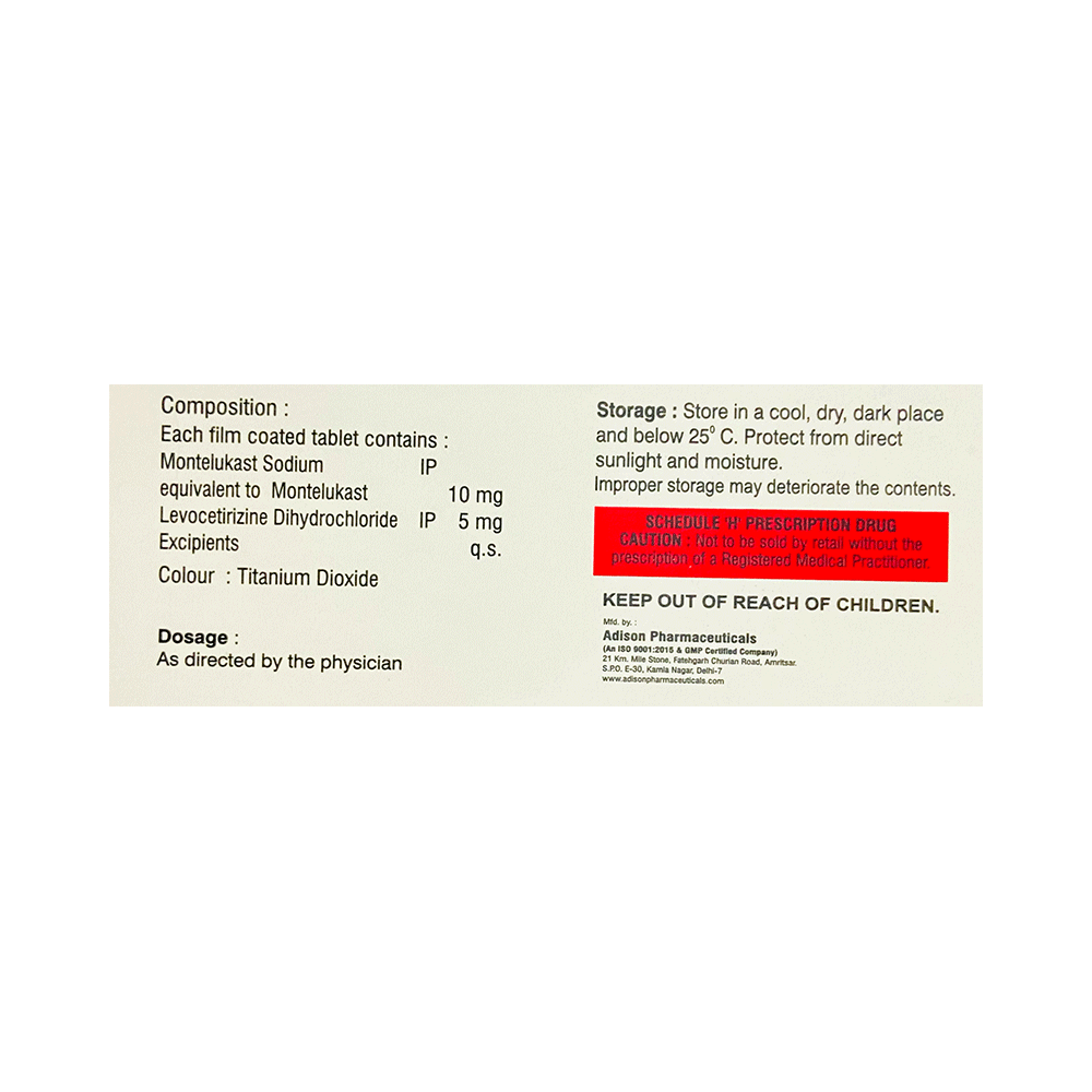 Salt Composition: Levocetirizine (5mg) + Montelukast (10mg)