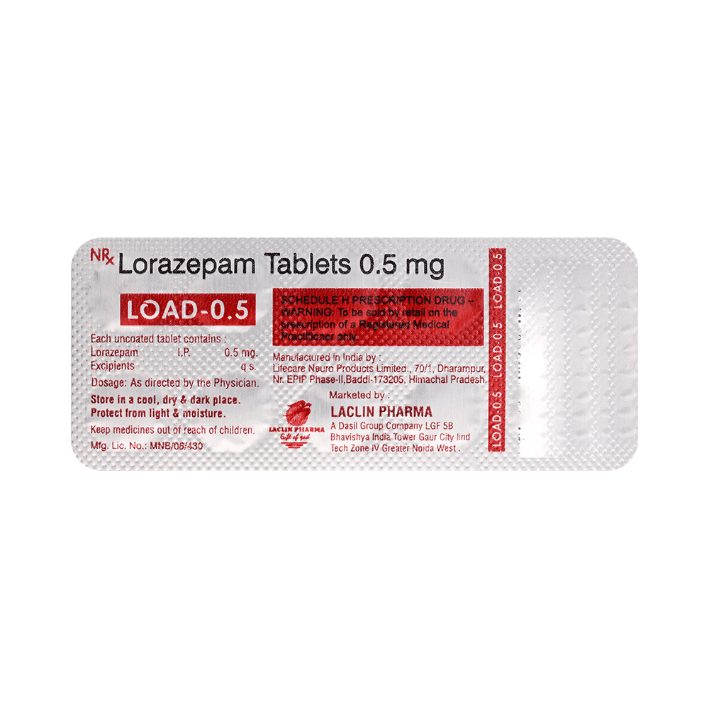 Load 0.5 Tablet is a prescription medicine used to treat anxiety disorders such as generalized anxiety disorder (excessive worry or restlessness), obsessive-compulsive disorder (OCD), panic attacks, and social phobias. It is also used for the short-term relief of the symptoms of anxiety. Load 0.5 Tablet relieves symptoms of anxiety such as nervousness, rapid breathing, increased heart rate, excessive sweating, trembling, weakness or lack of concentration. It may be taken with or without food. However, take it at the same time each day as this helps to maintain a consistent level of medicine in the body. Take this medicine in the dose and duration as advised by your doctor as it has a high potential of habit-forming.If you have missed any doses, take it as soon as you remember it and finish the full course of treatment even if you feel better. You should not stop this medication without talking to your doctor as it may cause nausea and anxiety.The most common side effects of this medicine are weakness, sedation, and balance disorder (loss of balance). It may also cause dizziness and sleepiness, so do not drive or do anything that requires mental focus until you know how this medicine affects you. Talk to your doctor about potential side effects and ways you might prevent or cope with them. You may also get side effects after stopping the treatment.Before taking the medicine you should tell your doctor if you are pregnant, planning to become pregnant, or breastfeeding. Taking it along with alcohol affects the way it works and can increase the chance of side effects. If you have been taking this medicine for a long time then regular monitoring of blood and liver functions may be required.