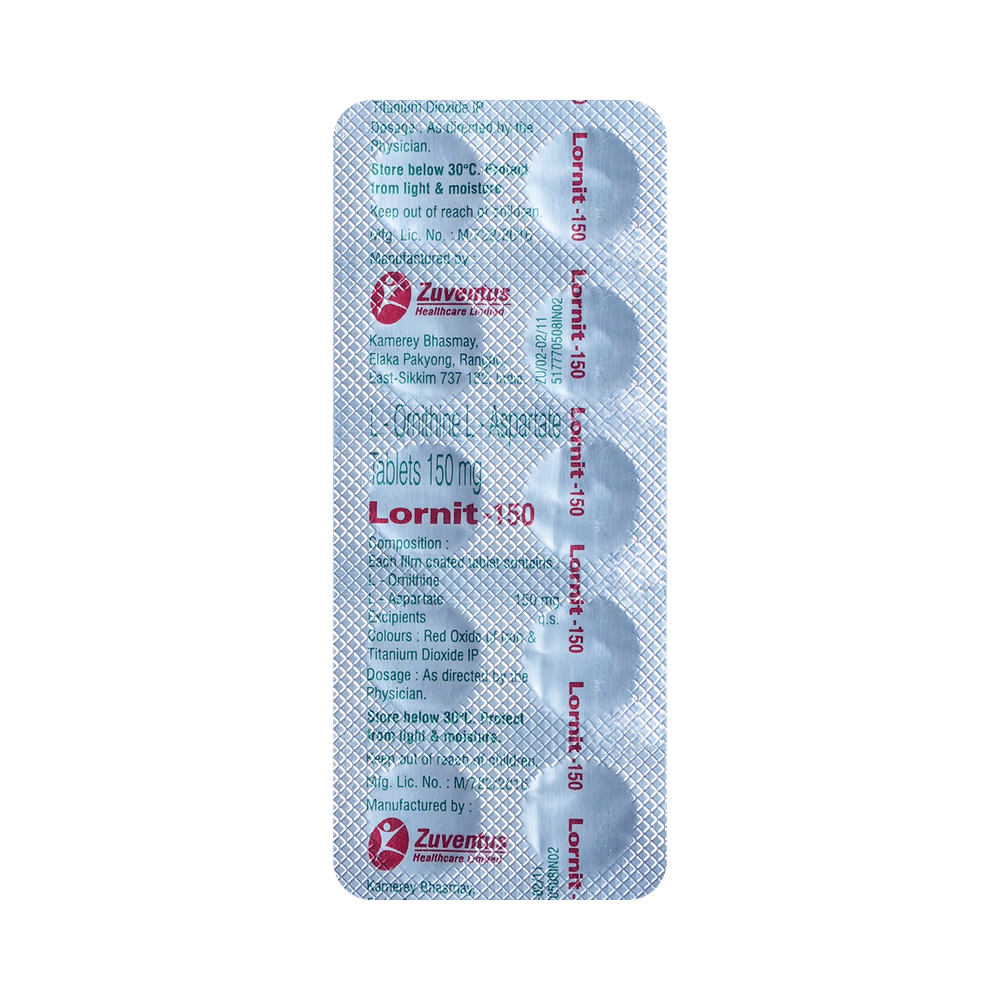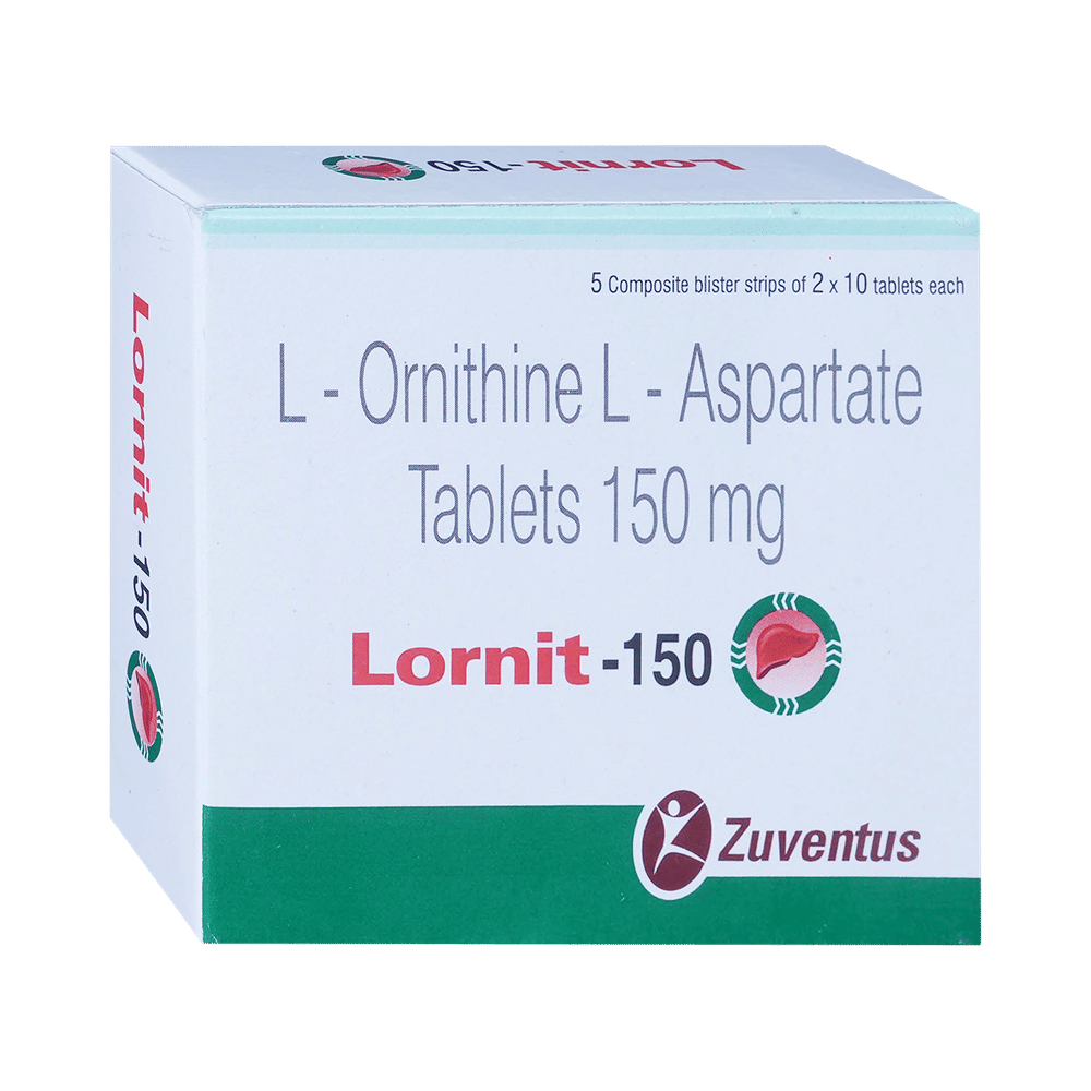 Lornit 150 Tablet is used in the treatment of liver disease. It protects the liver from harmful chemical substances and improves the functioning of the liver. Lornit 150 Tablet must be administered under the supervision of healthcare professionals. The course of the treatment should be completed for better results.This medicine is well tolerated with little or no side effects. However, if you experience any symptoms which you think are due to the medicine, inform your doctor. If any kind of allergic reaction (severe rashes, difficulty in swallowing, shortness of breath, swelling, etc.) occurs, you must call for immediate medical help.Inform your doctor before taking the medicine if you have any other medical conditions or are taking any other medications. Pregnant and breastfeeding women should take it only if advised by the doctor. While taking the medicine, your doctor may advise regular blood tests to monitor blood creatinine and blood/urine urea levels.