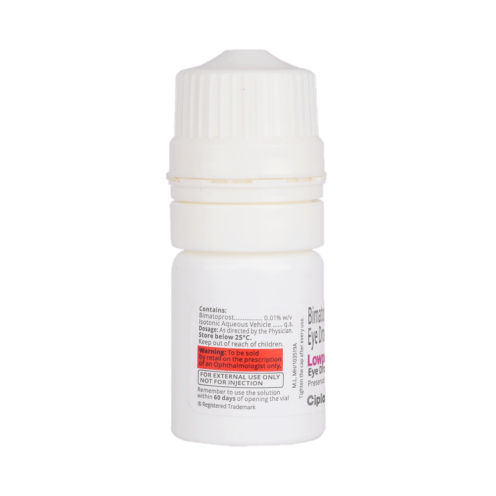 Your eyelashes may become more dense and eyelid skin may darken. These changes should disappear after discontinuing Lowprost PF 0.01% Eye Drop.