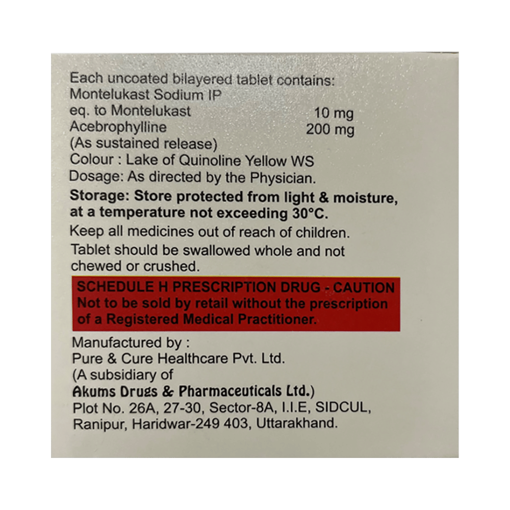 Salt Composition: Acebrophylline (200mg) + Montelukast (10mg)