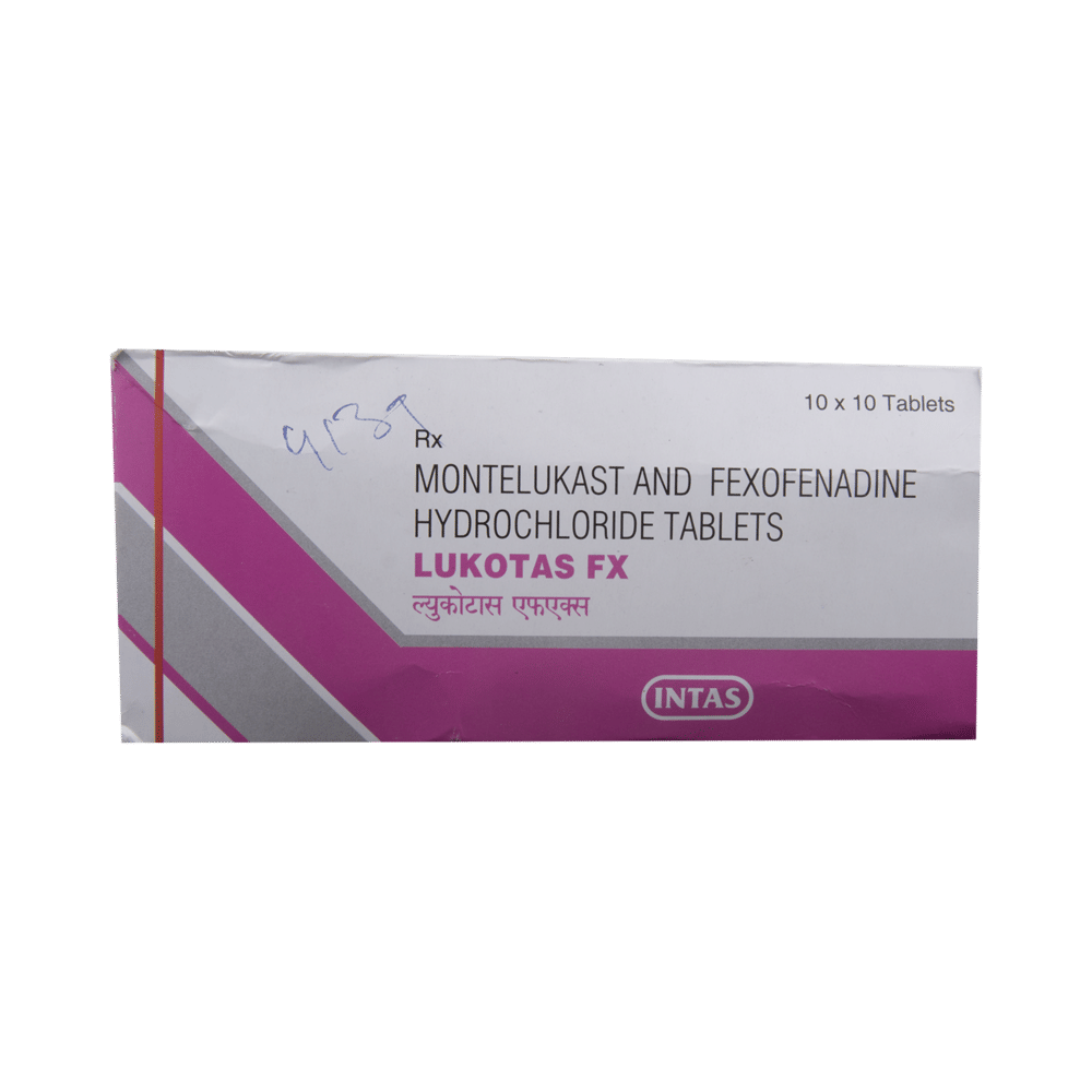 In Treatment of Sneezing and runny nose due to allergiesLukotas FX Tablet is a combination medicine that provides relief from symptoms such as blocked or runny nose, sneezing and itchy or watery eyes. This will make it easier for you to go about your daily activities. It rarely has any serious side effects and you may only need to take it on days you have symptoms. If you are taking it to prevent getting symptoms you should use it regularly to get the most benefit.