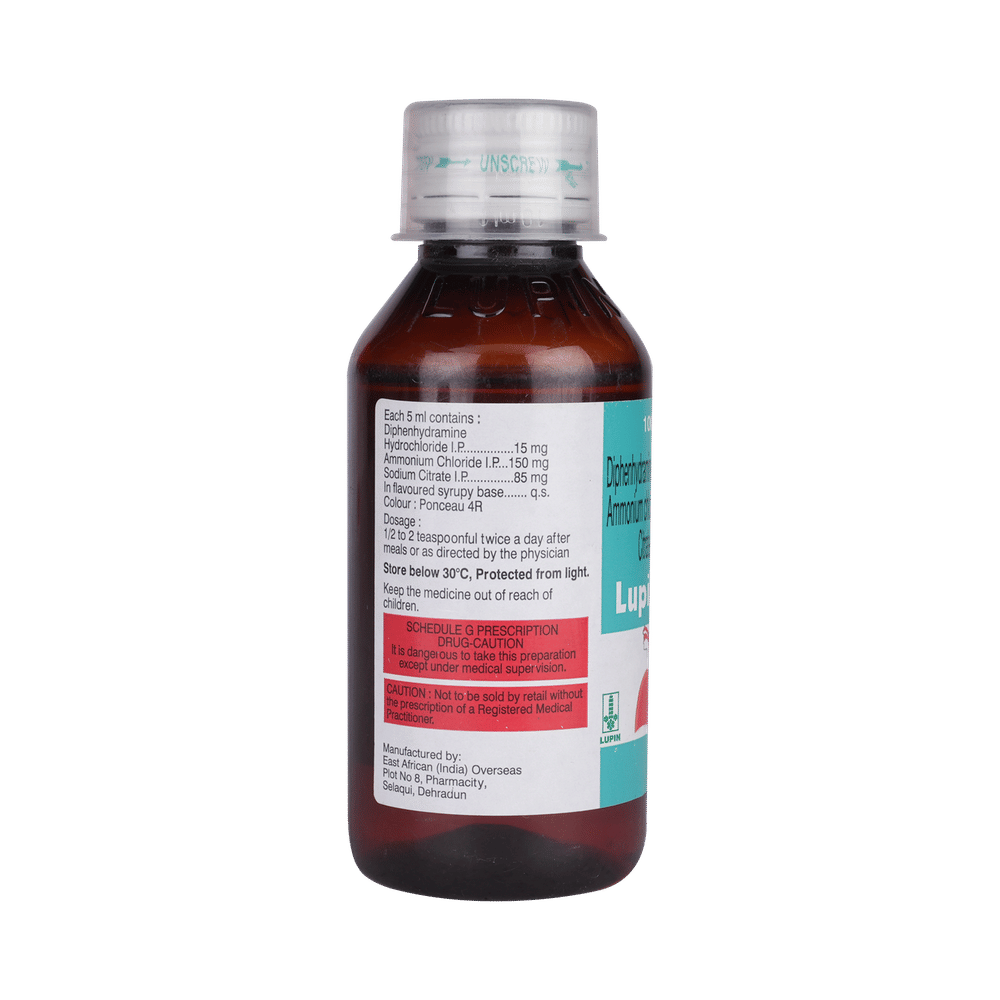 Lupihist Syrup is used in the treatment of cough. It relieves allergy symptoms such as runny nose, stuffy nose, sneezing, watery eyes, and congestion or stuffiness. It also thins mucus in the nose, windpipe, and lungs, making it easier to cough out. Lupihist Syrup is taken with or without food in a dose and duration as advised by the doctor. The dose you are given will depend on your condition and how you respond to the medicine. You should keep taking this medicine for as long as your doctor recommends. If you stop treatment too early your symptoms may come back and your condition may worsen. Let your healthcare team know about all other medications you are taking as some may affect, or be affected by this medicine.The most common side effects of this medicine include stomach pain, coordination impaired, thickened respiratory tract secretions, and allergic reactions. Most of these are temporary and usually resolve with time. Contact your doctor straight away if you are at all concerned about any of these side effects. This medicine may cause dizziness and sleepiness, so do not drive or do anything that requires mental focus until you know how this medicine affects you. Avoid drinking alcohol while taking this medicine as it can make dizziness worse.Never support self-medication or recommend your medicine to another person. It is beneficial to have plenty of fluids while taking this medication. Before you start taking this medicine it is important to inform your doctor if you are suffering from liver or kidney disease. You should also tell your doctor if you are pregnant, planning pregnancy, or breastfeeding.