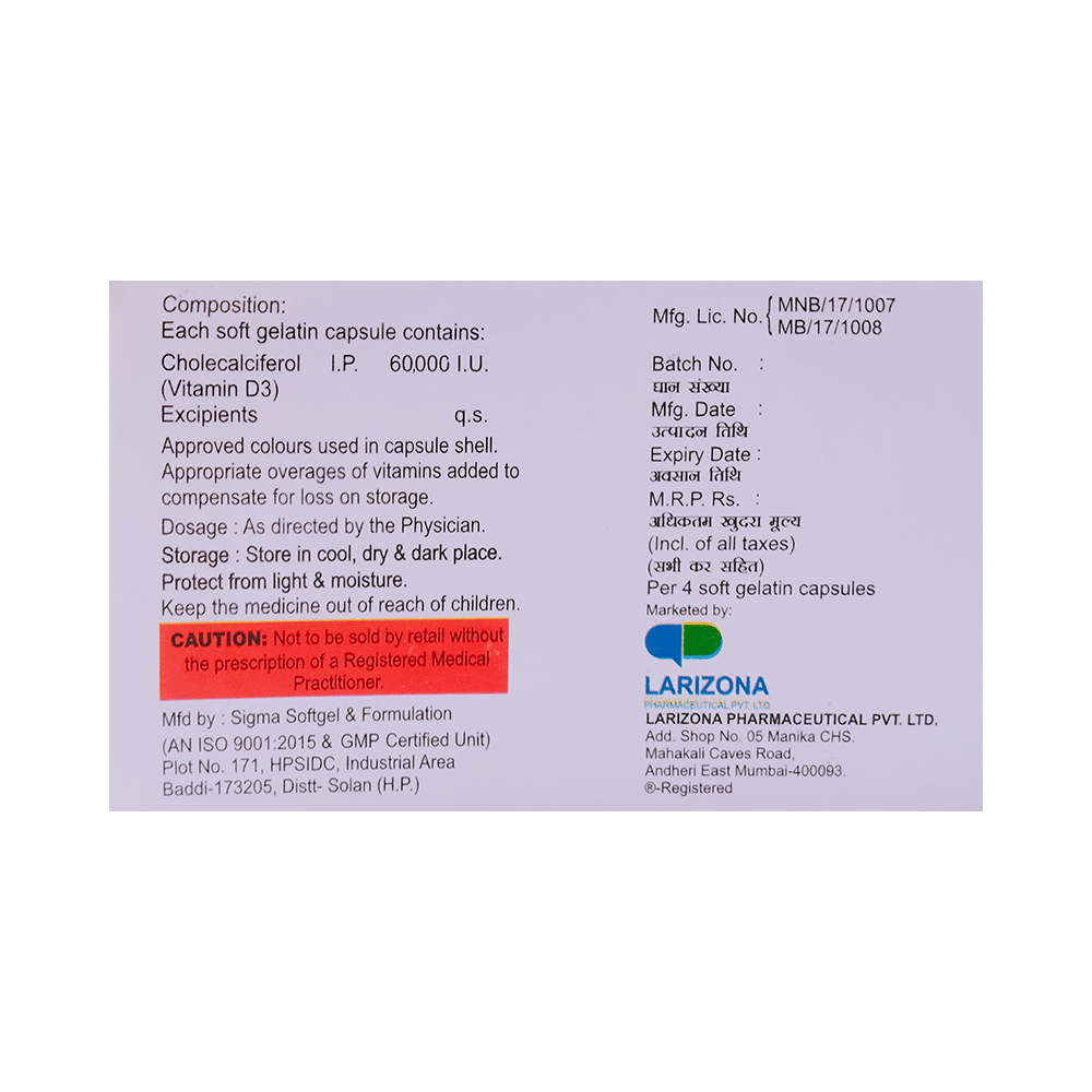 Salt Composition: Vitamin D3 (60000IU)
