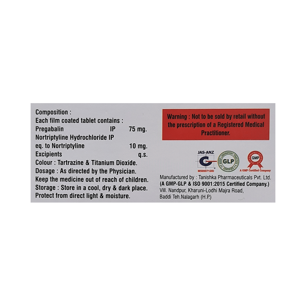 Salt Composition: Pregabalin (75mg) + Nortriptyline (10mg)