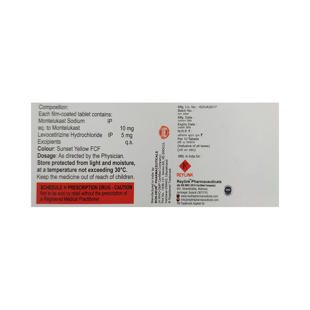 Salt Composition: Levocetirizine (5mg) + Montelukast (10mg)