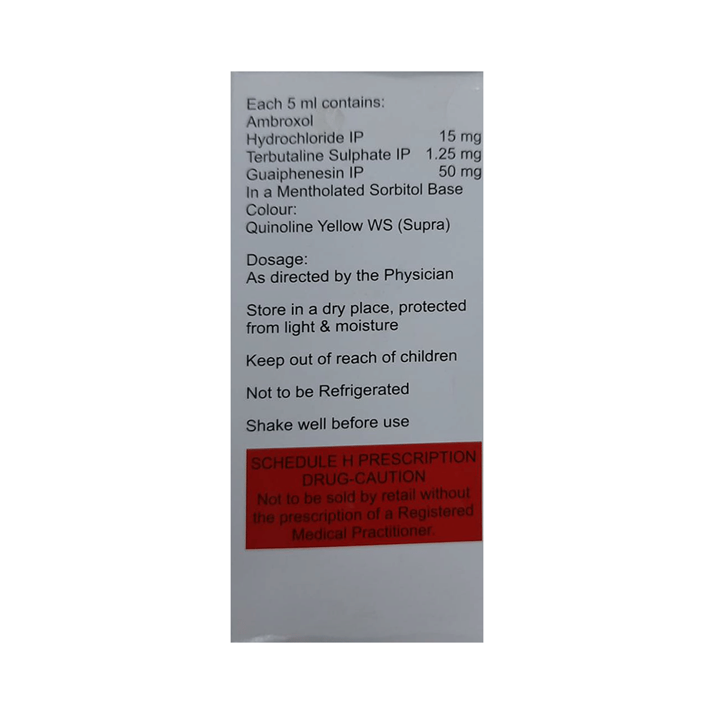 Salt Composition: Ambroxol (15mg/5ml) + Guaifenesin (50mg/5ml) + Terbutaline (1.25mg/5ml)