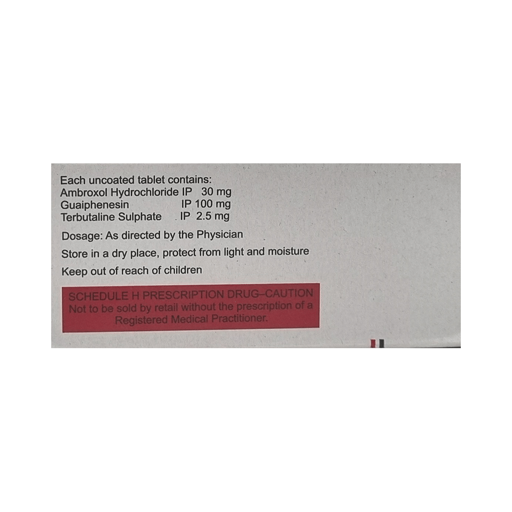 Salt Composition: Ambroxol (30mg) + Guaifenesin (100mg) + Terbutaline (2.5mg)