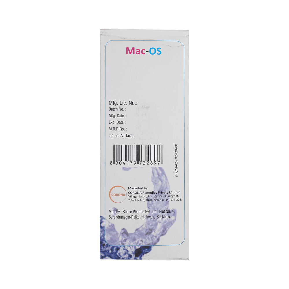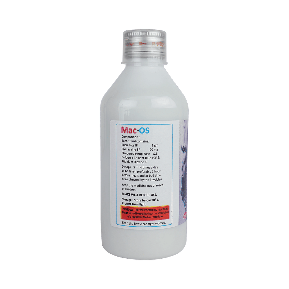 Mac OS Suspension is a combination medicine used in the treatment of acidity, stomach ulcer, and heartburn. It helps in relieving the symptoms of acidity and ulcers such as stomach pain or irritation. It also neutralizes excessive acid in the stomach and helps in the easy passage of gas. Mac OS Suspension is taken without food in a dose and duration as advised by the doctor. The dose you are given will depend on your condition and how you respond to the medicine. You should keep taking this medicine for as long as your doctor recommends. If you stop treatment too early your symptoms may come back and your condition may worsen. Let your healthcare team know about all other medications you are taking as some may affect, or be affected by this medicine. Do not take it for more than the recommended duration as long-term administration may have harmful effects on the health.The most common side effects are constipation, nausea, vomiting, dizziness, insomnia, and allergic reaction. These are temporary and usually resolve with time. Contact your doctor straight away if you are at all concerned about any side effects. To overcome constipation, you should add fiber-rich foods in your diet and stay hydrated. It may also cause dizziness and sleepiness, so do not drive or do anything that requires mental focus until you know how this medicine affects you. Avoid drinking alcohol while taking this medicine as it can worsen your sleepiness. Lifestyle modifications like having cold milk and avoiding hot tea, coffee, spicy food or chocolate can help you to get better results.Before taking this medicine, you should tell your doctor if you are pregnant, planning pregnancy or breastfeeding. You should also tell your doctor if you have any liver diseases so that your doctor can prescribe a suitable dose for you.