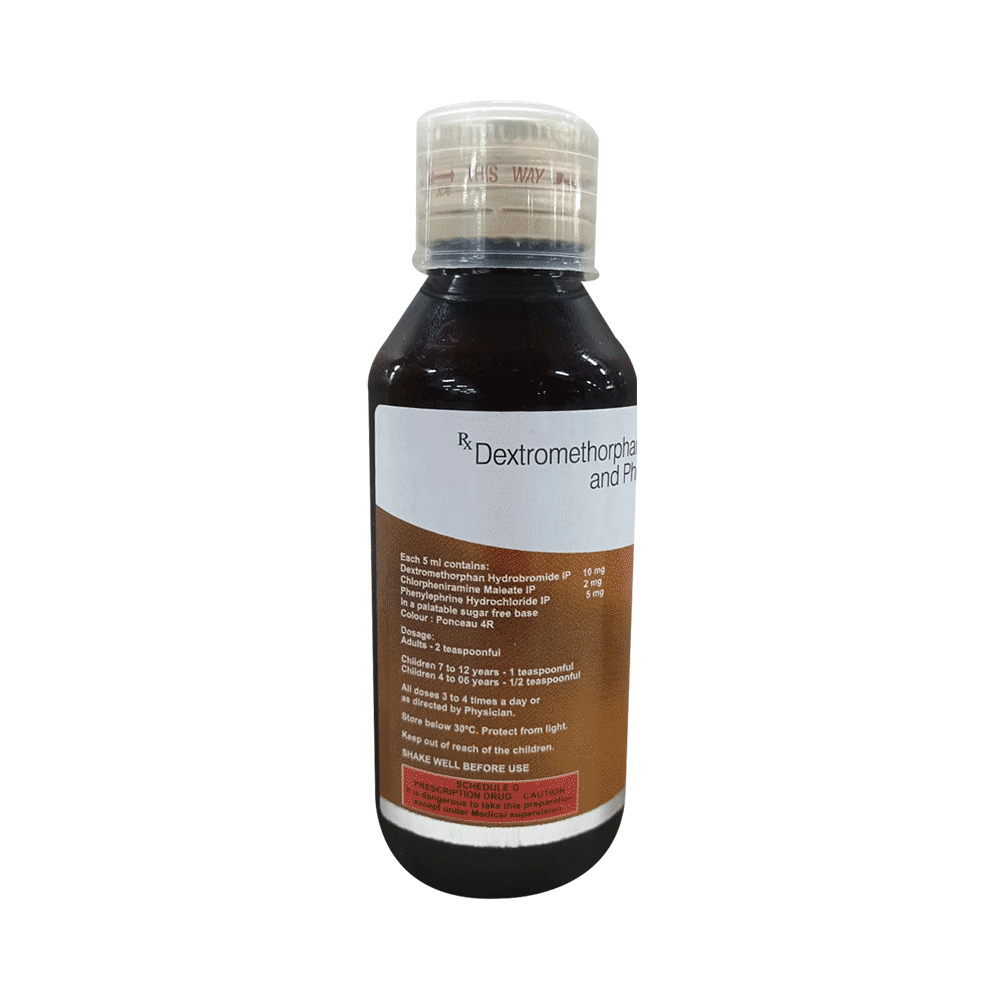 Salt Composition: Phenylephrine (5mg/5ml) + Chlorpheniramine Maleate (2mg/5ml) + Dextromethorphan Hydrobromide (10mg/5ml)