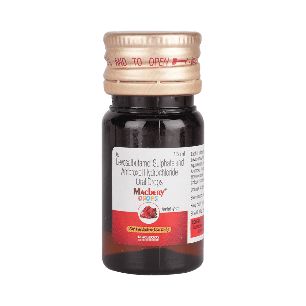 Macbery Oral Drops is a combination of two medicines: Levosalbutamol and Ambroxol, which relieves cough.