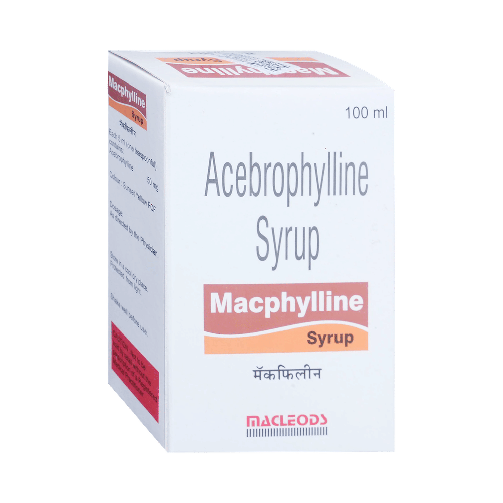 Macphylline 50mg/5ml Syrup is used to treat and prevent symptoms of asthma, bronchitis, and chronic obstructive pulmonary disorder (a lung disorder in which airflow to the lung is blocked). It helps relax the muscles of the air passages, thus widening them and making them easier to breathe. Macphylline 50mg/5ml Syrup can be taken with the food in the evening. Take it at the same time every day to get the most benefit. The dose and how often you take it depends on what you take it for. Your doctor will decide how much you need to improve your symptoms. Take this medicine for as long as it is prescribed for you. Do not miss even a single dose. If missed, take it as soon as you remember, or skip the missed dose and continue with regular dosing if it's almost time for the next dose. It does not work immediately or prevent the already-started breathing trouble; hence, always carry your medical inhaler for an emergency.The most common side effects of this medicine include abdominal discomfort, abdominal distension, vomiting, abdominal pain, diarrhea, constipation, and heartburn. If these bother you or appear serious, let your doctor know. There may be ways of reducing or preventing them. Generally, it is advised not to consume alcohol or do not smoke while on treatment.Before taking this medicine, tell your doctor if you have kidney, liver, or heart-related disease. Your doctor should also know about all other medicines you are taking, as many may make this medicine less effective or change its effect. Before starting the treatment, inform your doctor if you are pregnant or breastfeeding.