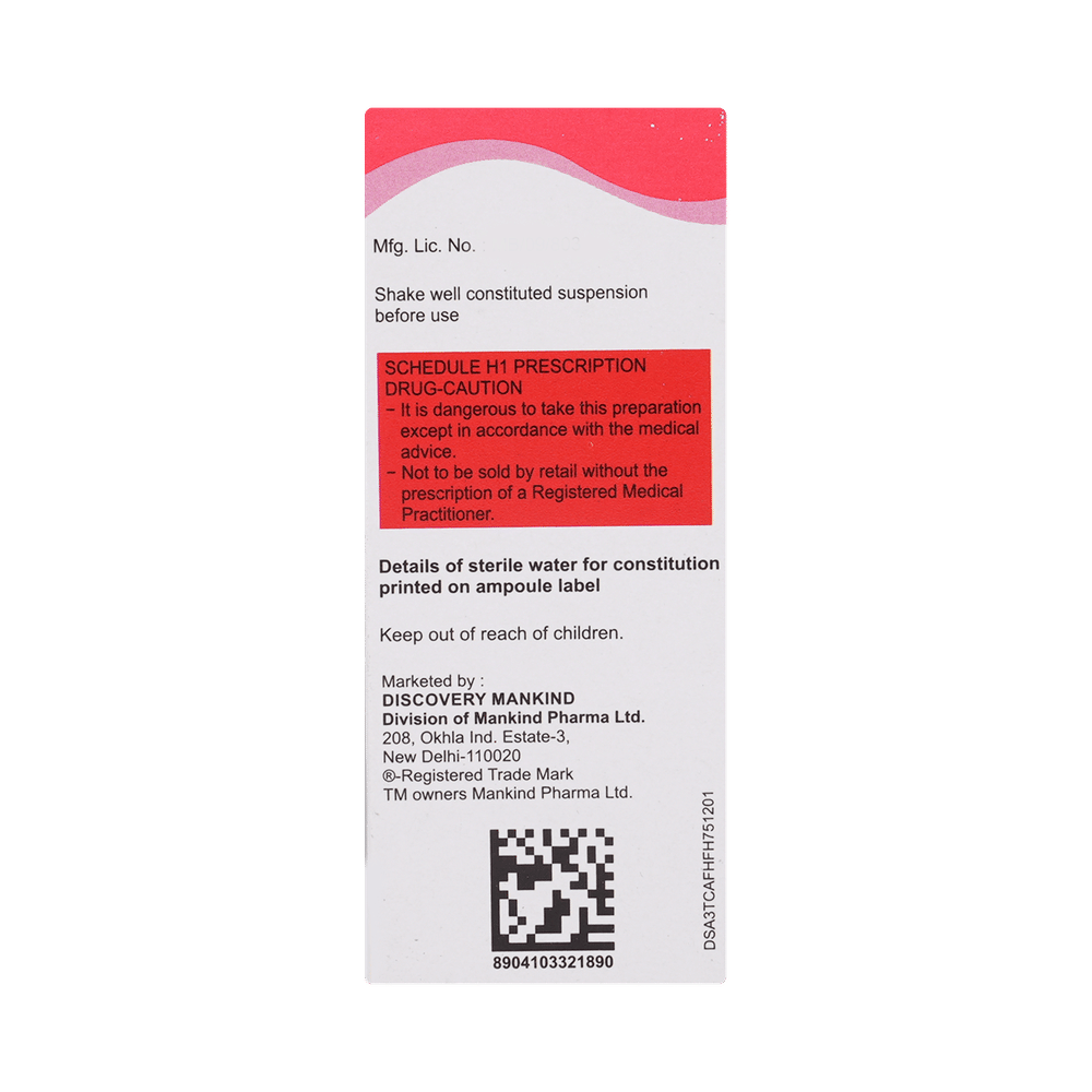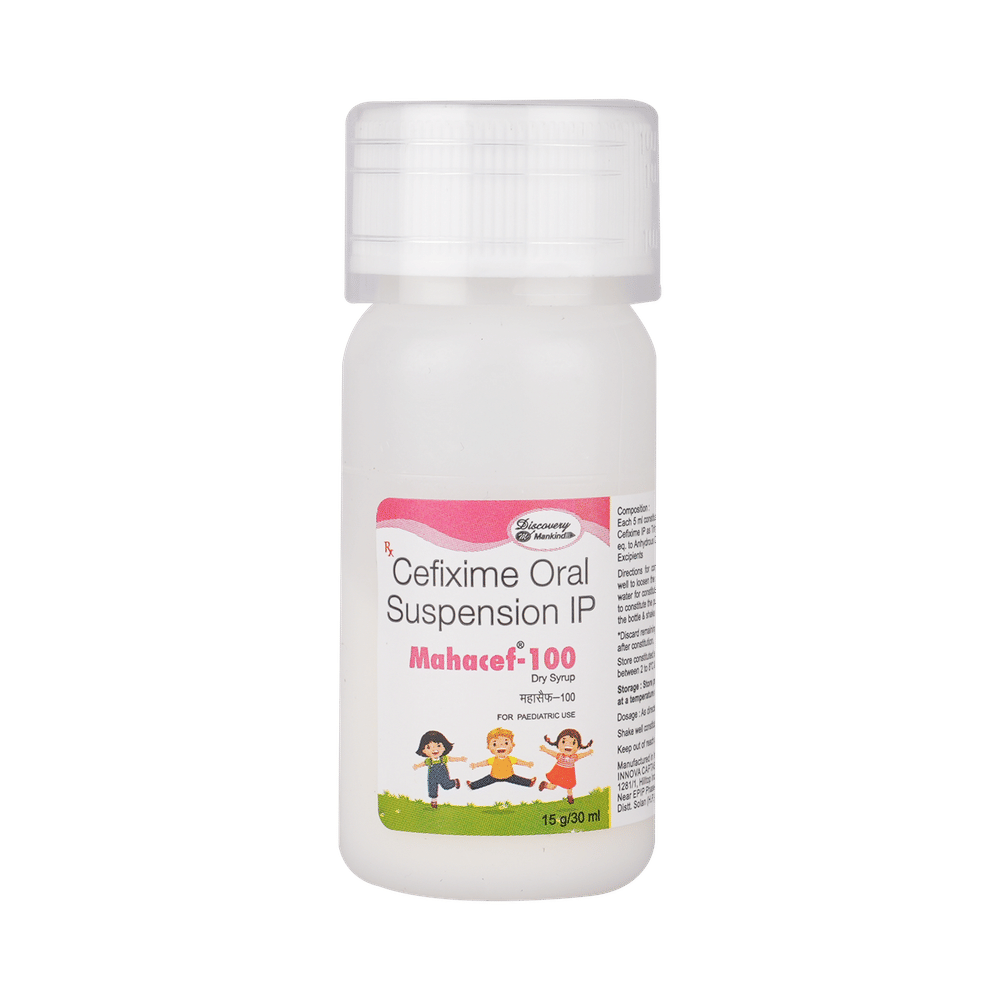 Mahacef 100mg Dry Syrup is an antibiotic belonging that is used to treat a variety of bacterial infections. It is effective in infections of the respiratory tract (eg. pneumonia), urinary tract, ear, nasal sinus, throat, and some sexually transmitted diseases. Mahacef 100mg Dry Syrup should be given under the supervision of a doctor or health professional. Use it regularly at evenly spaced intervals as per the schedule prescribed by your doctor. Using it at the same time every day will help you remember to take it. The dose will depend on what you are being treated for, but you should always complete the full course of this antibiotic as prescribed by your doctor. Do not stop taking it until you have finished, even when you feel better. If you stop taking it early, some bacteria may survive and the infection may come back or worsen. It will not work for viral infections such as flu or common cold. Using any antibiotic when you do not need it can make it less effective for future infections.The most common side effects of this medicine include nausea, stomach pain, indigestion, and diarrhea. These are usually mild but let your doctor know if they bother you or do not go away.Before taking it, you should let your doctor know if you are allergic to any antibiotics or have any kidney or liver problems. You should also let your healthcare team know all other medicines you are taking as they may affect, or be affected by this medicine. This medicine is generally regarded as safe to use during pregnancy and breastfeeding if prescribed by a doctor.