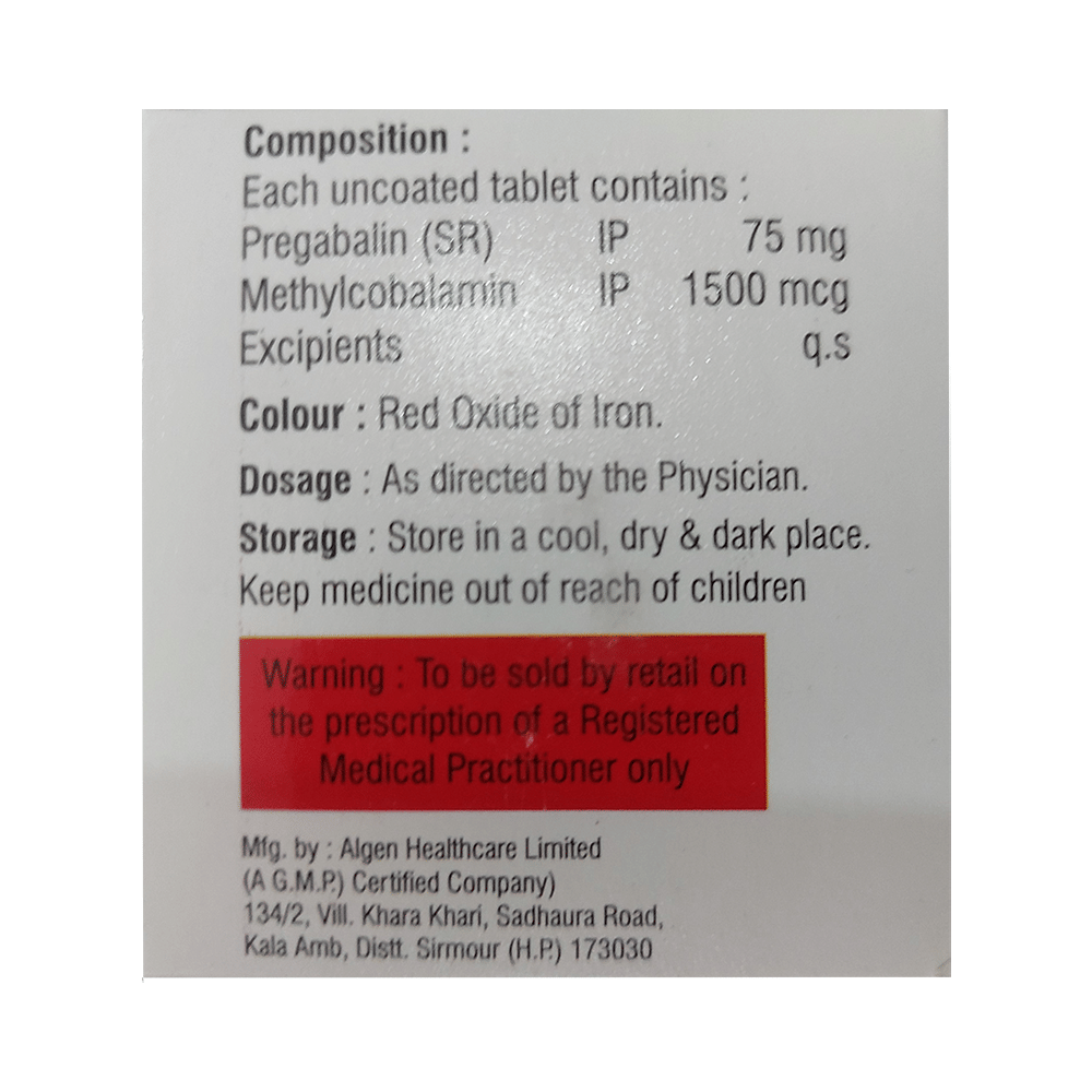 Salt Composition: Methylcobalamin (1500mcg) + Pregabalin (75mg)