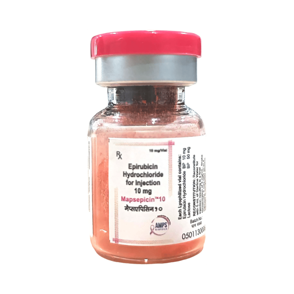 Mapsepicin 10mg Injection is an anti-cancer medication. It works by suppressing the activity of an enzyme (topoisomerase II) involved in DNA multiplication of the breast cancer cells. It also forms harmful chemicals (free radicals) which cause DNA damage. This slows the growth of breast cancer cells and eventually kills them.