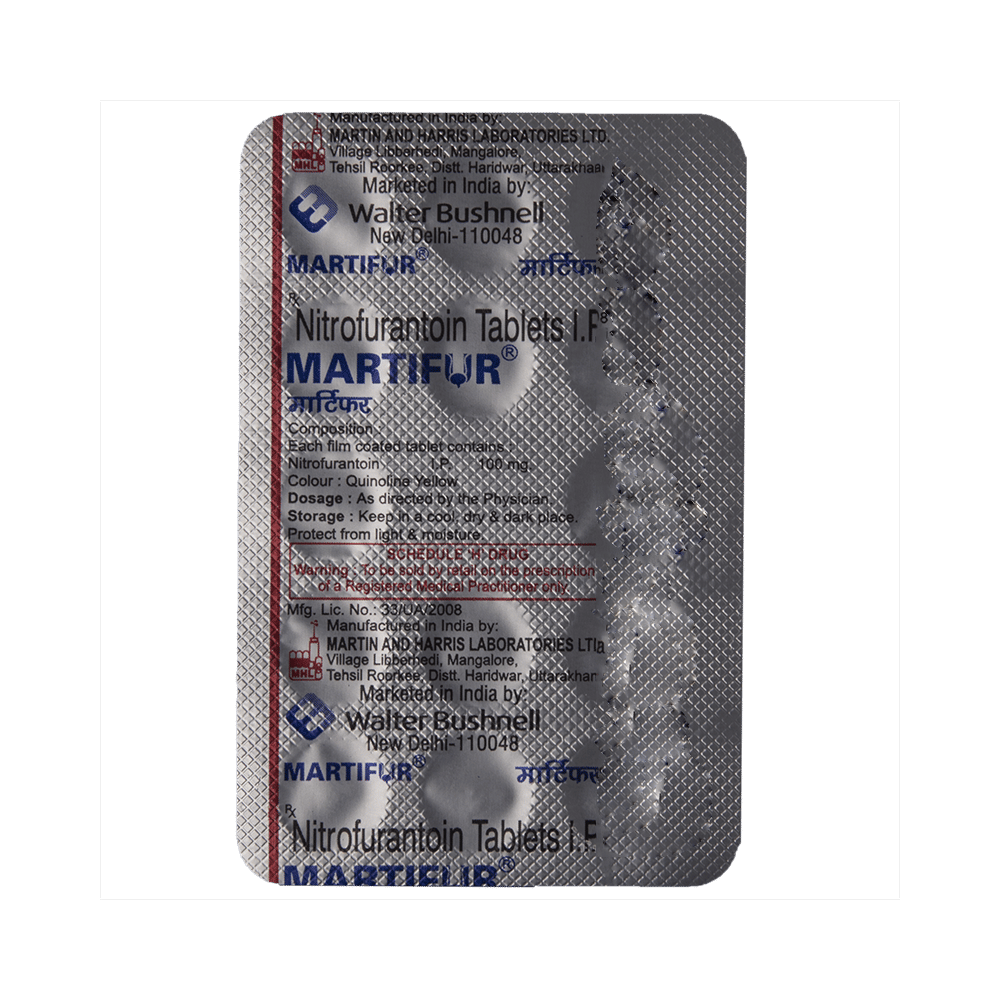 Martifur Tablet is an antibiotic that fights bacteria. It is used to treat and prevent bacterial infections of the urinary tract. It works by killing the bacteria that cause such disease. But, it will not treat a viral infection. Martifur Tablet should be taken in the dose and duration as advised by the doctor. You may take it with food to avoid nausea, which is a common side effect. It is better to have this medicine at the same time each day to get the most benefit and you should keep on taking this medicine for as long as you are prescribed it, even if your symptoms quickly improve. If you stop taking it too early the infection may return or worsen.Some people may develop side effects like nausea, vomiting, and diarrhea. These side effects are usually temporary and go away during treatment as your body adjusts to the medicine. Consult your doctor if these side effects bother you or do not go away. This medicine may turn your urine into dark yellow or brown color. But, this is normal and nothing to worry about.Before starting treatment with this medicine, you should tell your doctor if you are pregnant, breastfeeding or suffering from any liver, kidney or heart problems or if you are allergic to any antibiotic.