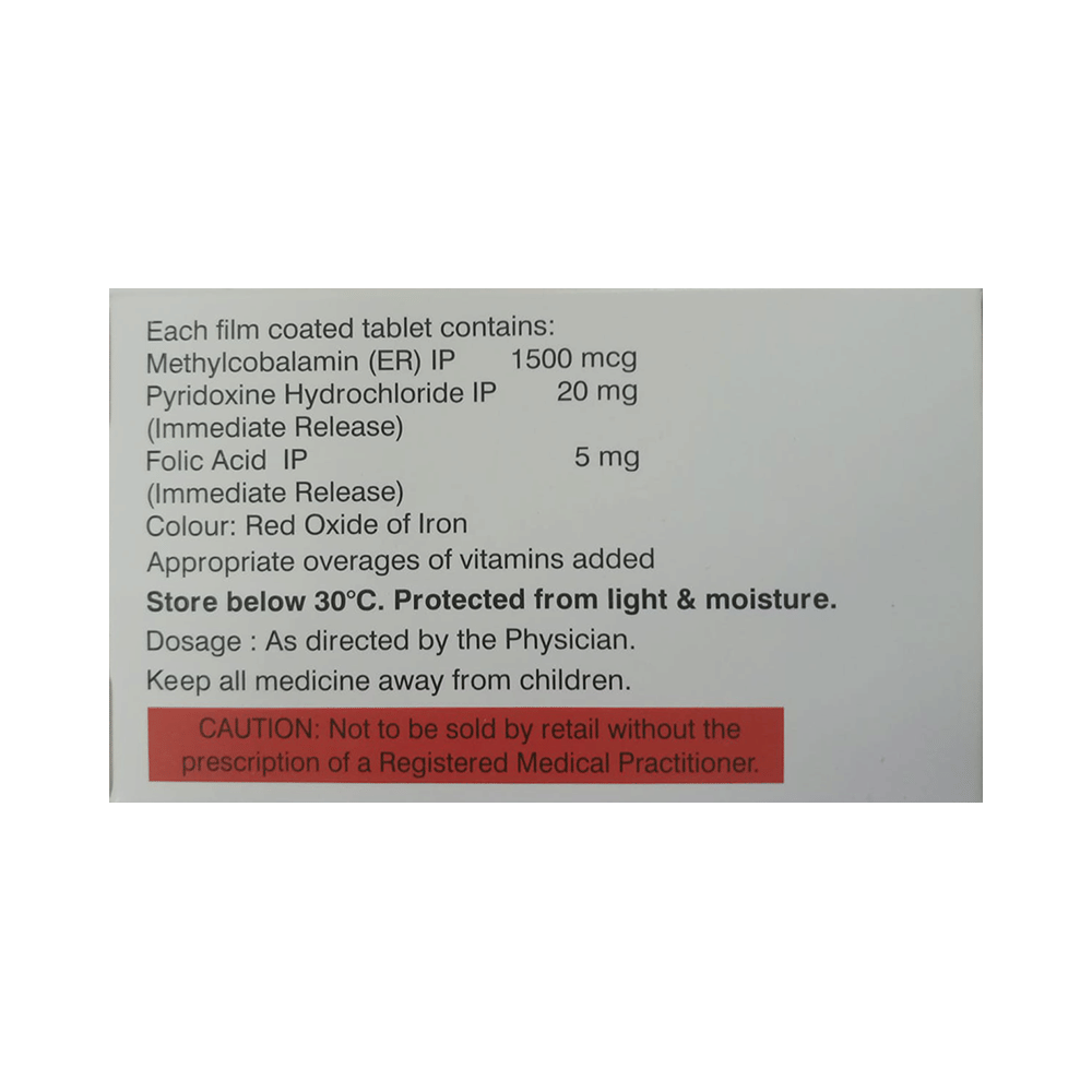 Salt Composition: Methylcobalamin (1500mcg) + Vitamin B6 (Pyridoxine) (20mg) + Folic Acid (5mg)