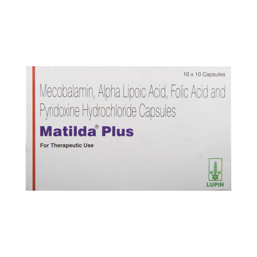 Matilda Plus Capsule is a combination of four nutritional supplements:Methylcobalamin, Alpha Lipoic Acid, Vitamin B6 (Pyridoxine) and Folic Acid which replenish the body's stores of important nutrients.