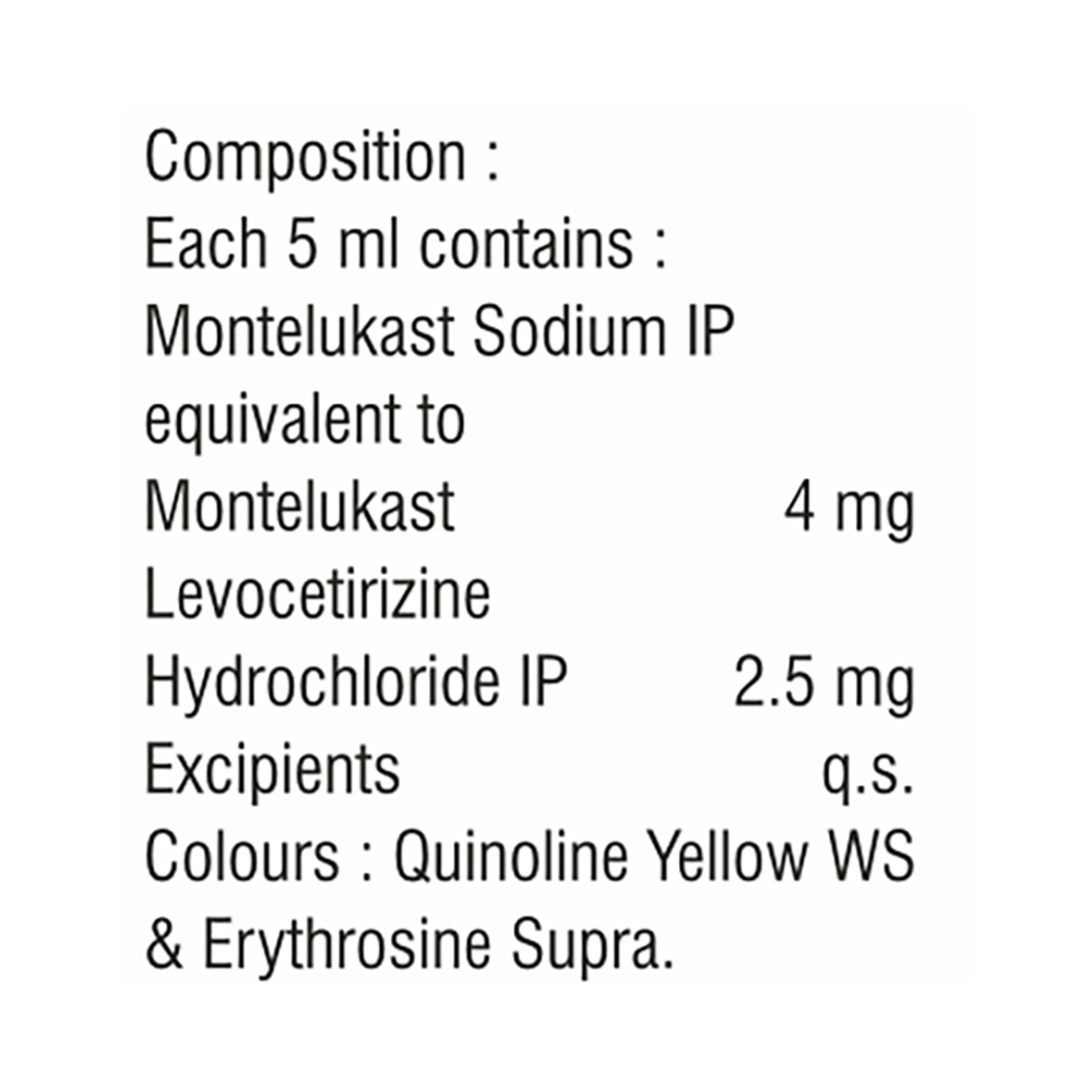 Salt Composition: Levocetirizine (2.5mg/5ml) + Montelukast (4mg/5ml)