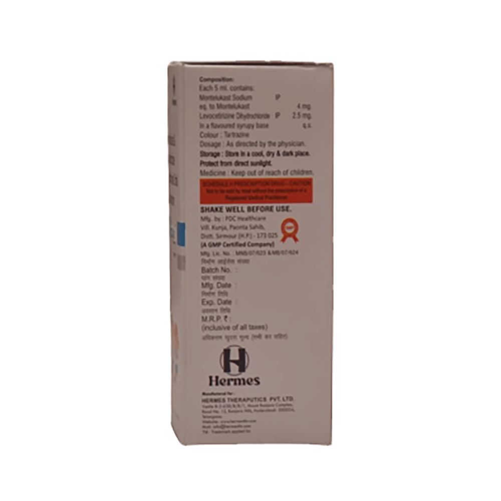 Salt Composition: Levocetirizine (2.5mg/5ml) + Montelukast (4mg/5ml)