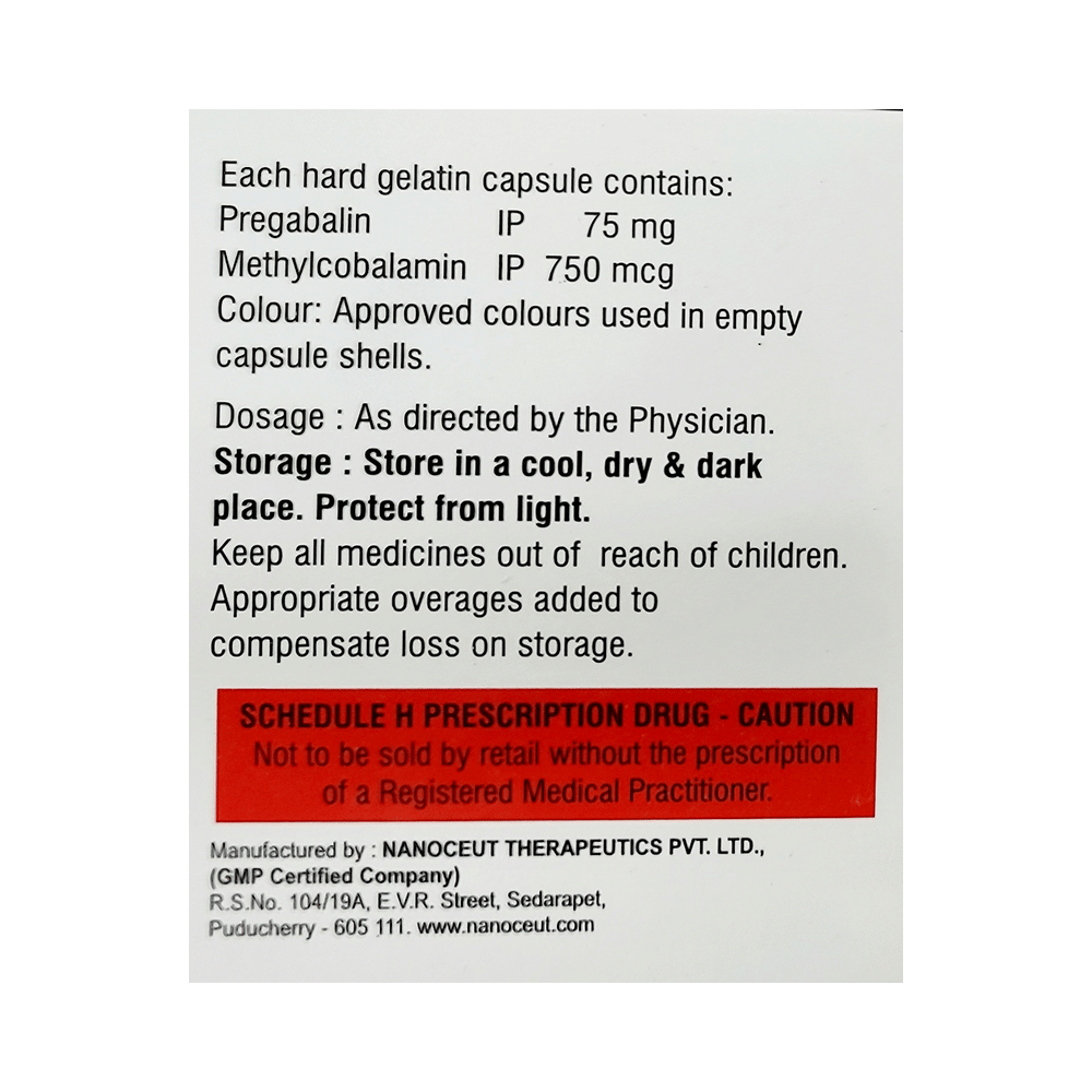 Salt Composition: Methylcobalamin (750mcg) + Pregabalin (75mg)