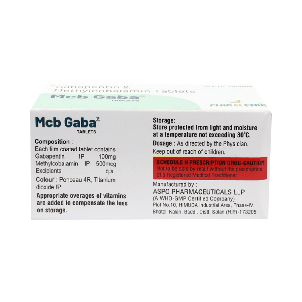 Mcb Gaba Tablet is a combination medicine used for the treatment of neuropathic pain. This medicine decreases pain by modulating calcium channel activity of the nerve cells. Mcb Gaba Tablet is taken by mouth with or without food, preferably at bedtime. It is advised to take medicine at the same time each day as this helps to maintain a consistent level of medicine in the body. Take this medicine in the dose and duration advised by your doctor. If you miss a dose of this medicine, take it as soon as you remember. Finish the full course of treatment even if you feel better. It is important that this medication is not stopped suddenly without talking to the doctor.Some common side effects of this medicine are nausea, peripheral edema, ataxia, blurred vision, fever and nystagmus (involuntary eye movement). It may also cause dizziness and sleepiness, so do not drive or do anything that requires mental focus until you know how this medicine affects you. It is important to inform your doctor if you develop any unusual changes in mood or behavior, new or worsening depression, or suicidal thoughts.Before taking the medicine you should tell your doctor if you are pregnant, planning to become pregnant, or breastfeeding. It can usually be mixed safely with other medicines but some drugs (including antacids and alcohol) do affect the way it works and can increase the chance of side effects.