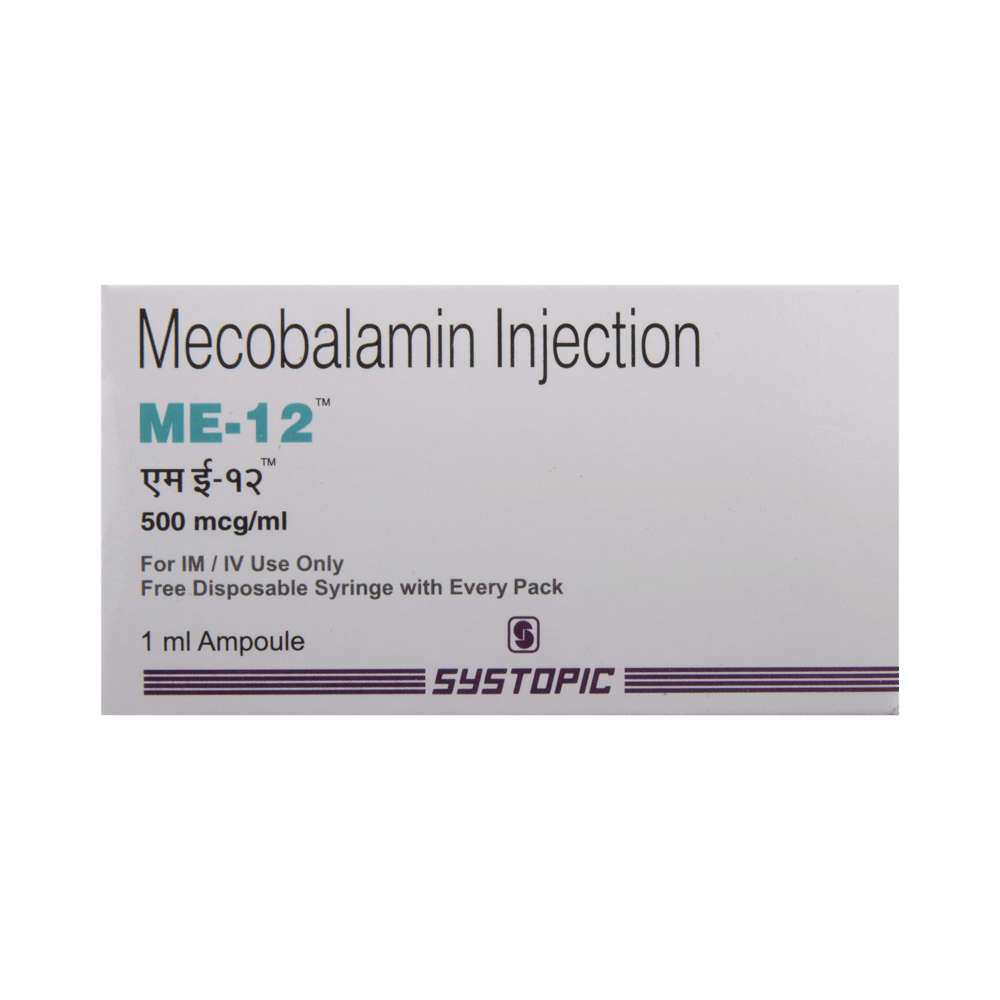 ME 12 Injection is a form of vitamin B12 that restores its level in the body thereby helping in treating certain anemias and nerve problems.