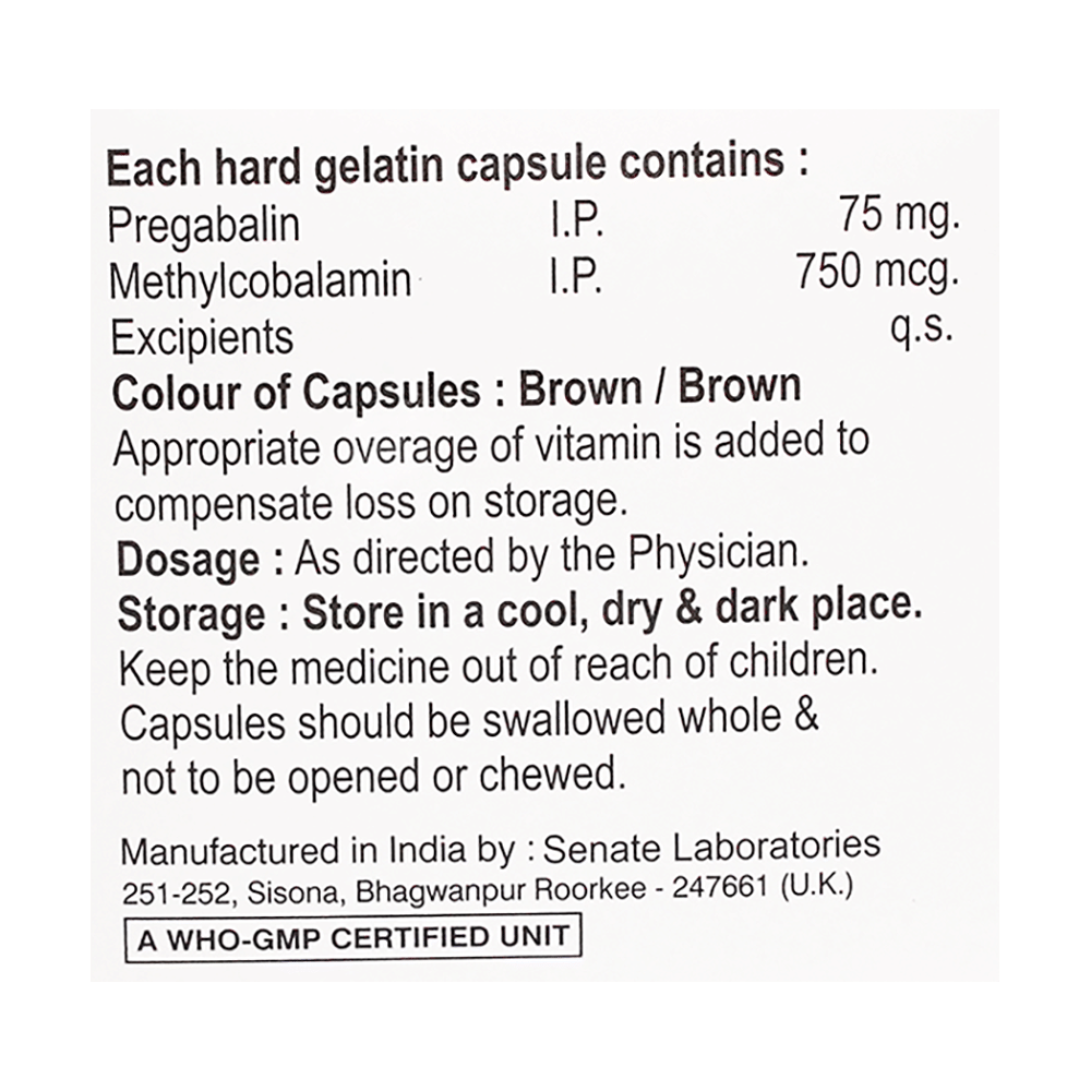 Salt Composition: Methylcobalamin (750mcg) + Pregabalin (75mg)