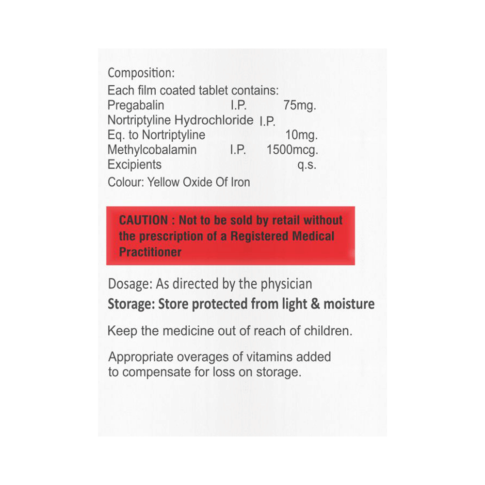 Salt Composition: Pregabalin (75mg) + Nortriptyline (10mg) + Methylcobalamin (1500mcg)